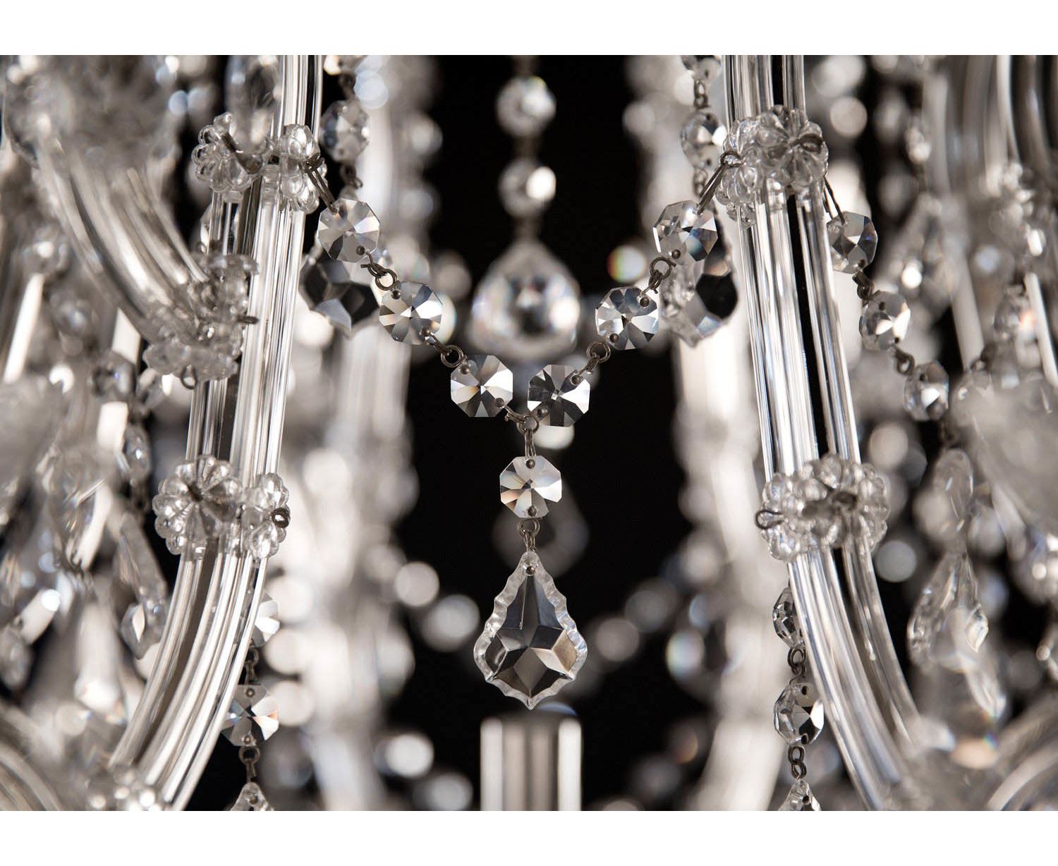 Люстра Maria Theresa - классическая европейская модель, она изготовлена из венецианского стекла и хрусталя. В настоящее время эта модель широко распространена во всем мире, с большим разнообразием форм и размеров. Имя Мария Тереза происходит от австрийской императрицы, которая была очарована драгоценными люстрами, созданными благодаря сотрудничеству между богемными ремесленниками и мастерами из Мурано.
