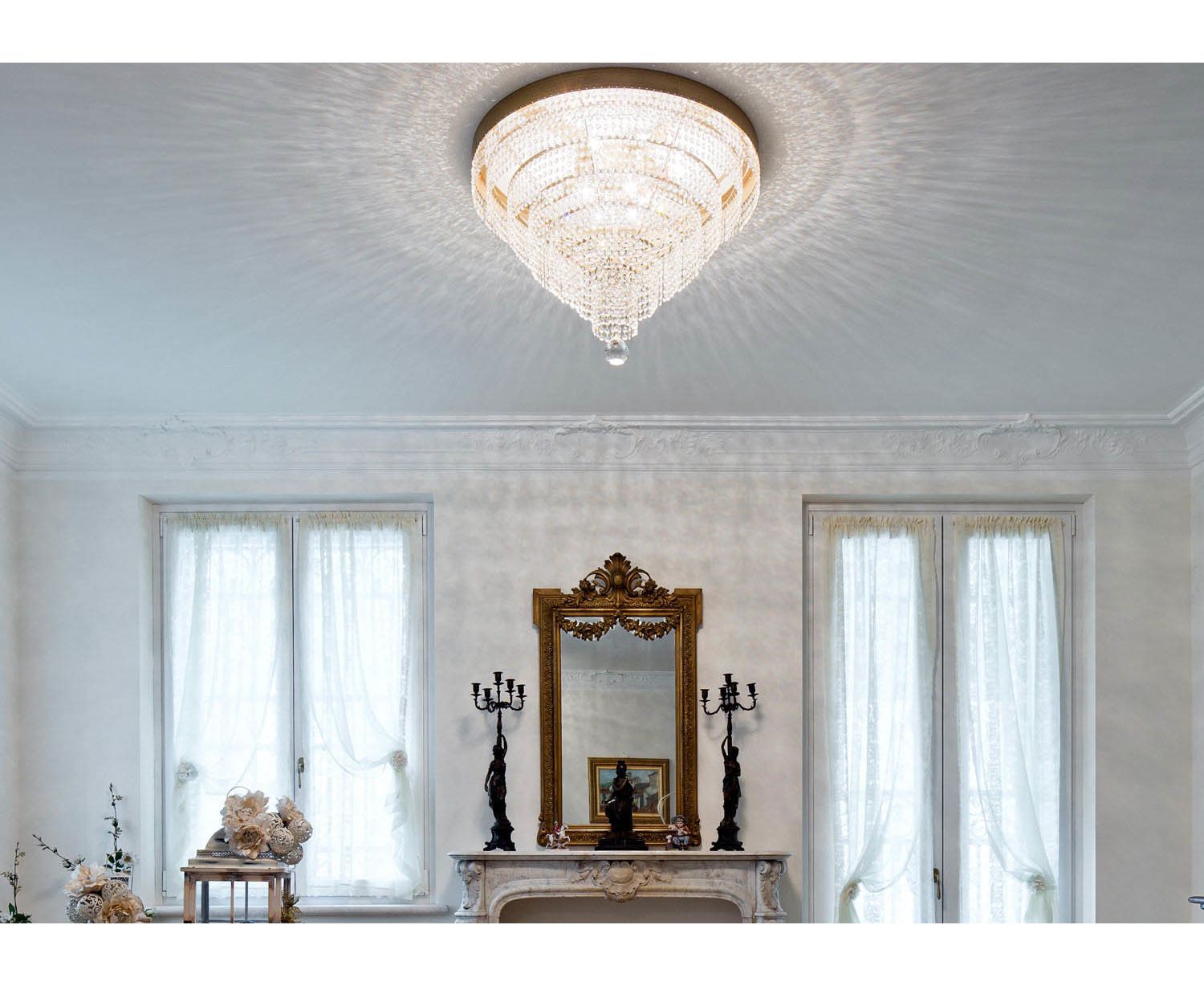 Классический хрустальный потолочный светильник Quark был разработан с целью создания базовой коллекции для каталога Crystal; Quark характеризуется существенной структурой и простыми украшениями. Благодаря своей простоте, эта работа по освещению может быть использована в контрактном секторе для украшения больших помещений; Quark может соответствовать разным видам мебели.