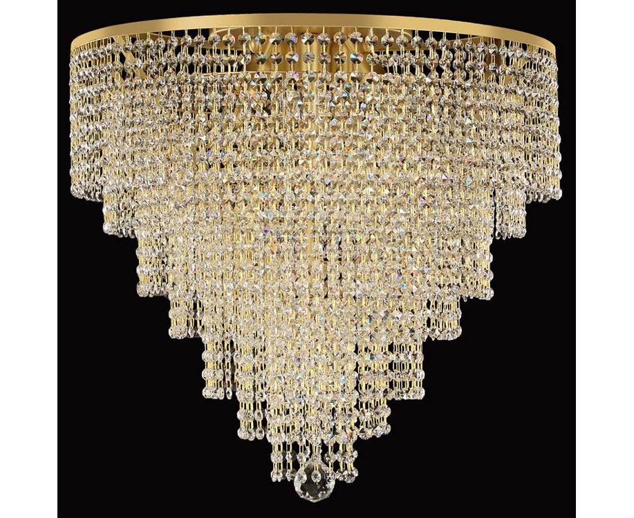 Этот потолочный светильник представляет собой круглую металлическую конструкцию, доступную в отделке из золота или серебра; правильные слои кристаллов спускаются от структуры потолка. Пирамида из хрустальных гирлянд заканчивается хрустальной стеклянной сферой, украшающей композицию. Quark - это светотехническая работа, характеризующаяся классическим вкусом, и по этой причине его можно размещать в самых разных местах. По той же причине, он может быть широко настроен: вид, форма и цвет кристаллов, а также отделка металлической конструкции может быть выбрана заказчиком.