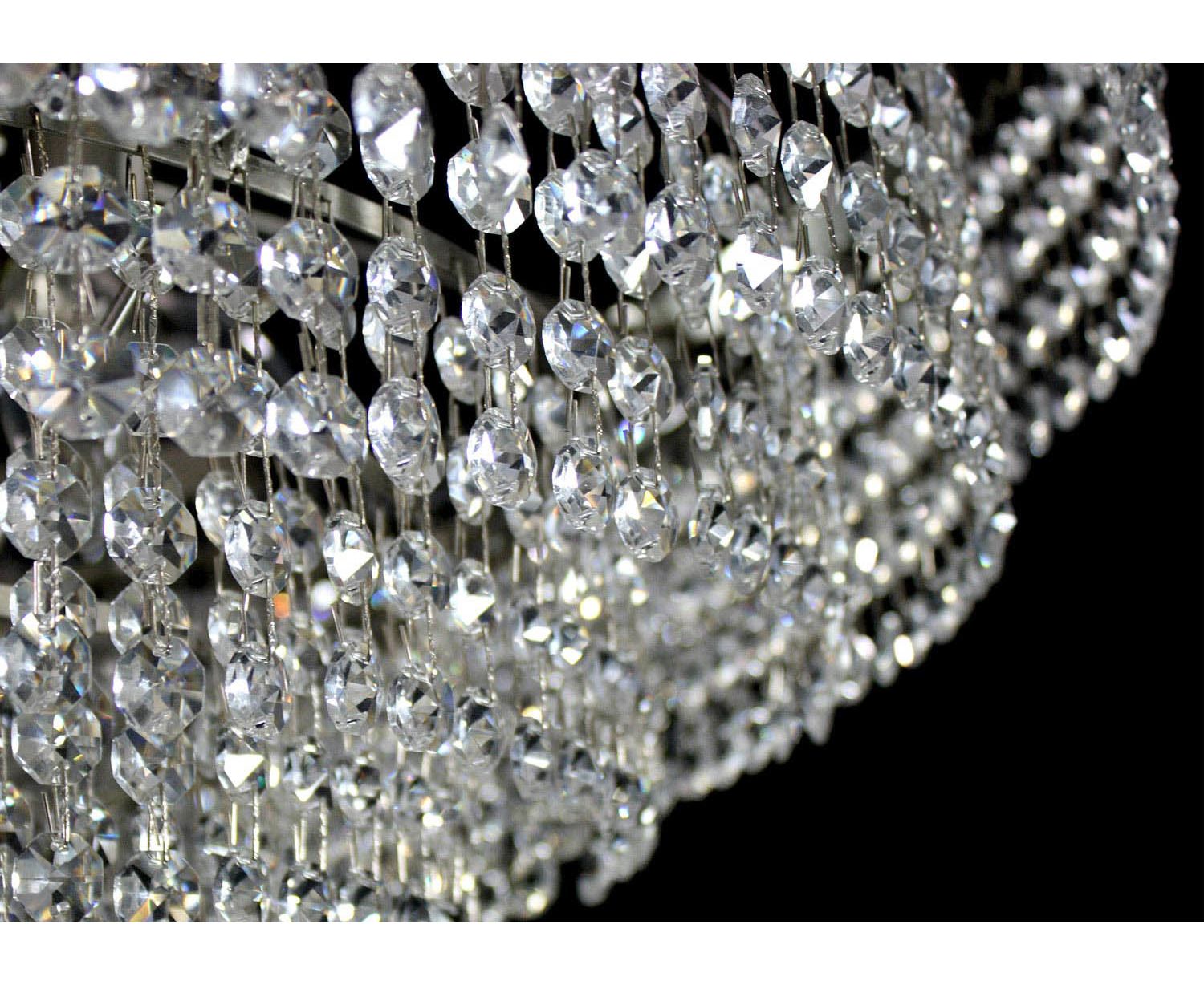 Этот потолочный светильник представляет собой круглую металлическую конструкцию, доступную в отделке из золота или серебра; правильные слои кристаллов спускаются от структуры потолка. Пирамида из хрустальных гирлянд заканчивается хрустальной стеклянной сферой, украшающей композицию. Quark - это светотехническая работа, характеризующаяся классическим вкусом, и по этой причине его можно размещать в самых разных местах. По той же причине, он может быть широко настроен: вид, форма и цвет кристаллов, а также отделка металлической конструкции может быть выбрана заказчиком.