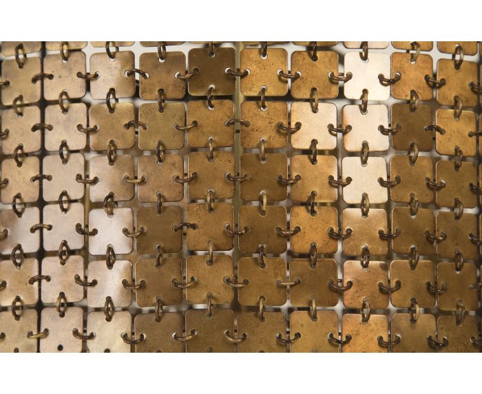 Грани плоской чеканной латуни, соединенные подвесной цепью, напоминают средневековые доспехи (вспомните «Игру престолов» на Горе).