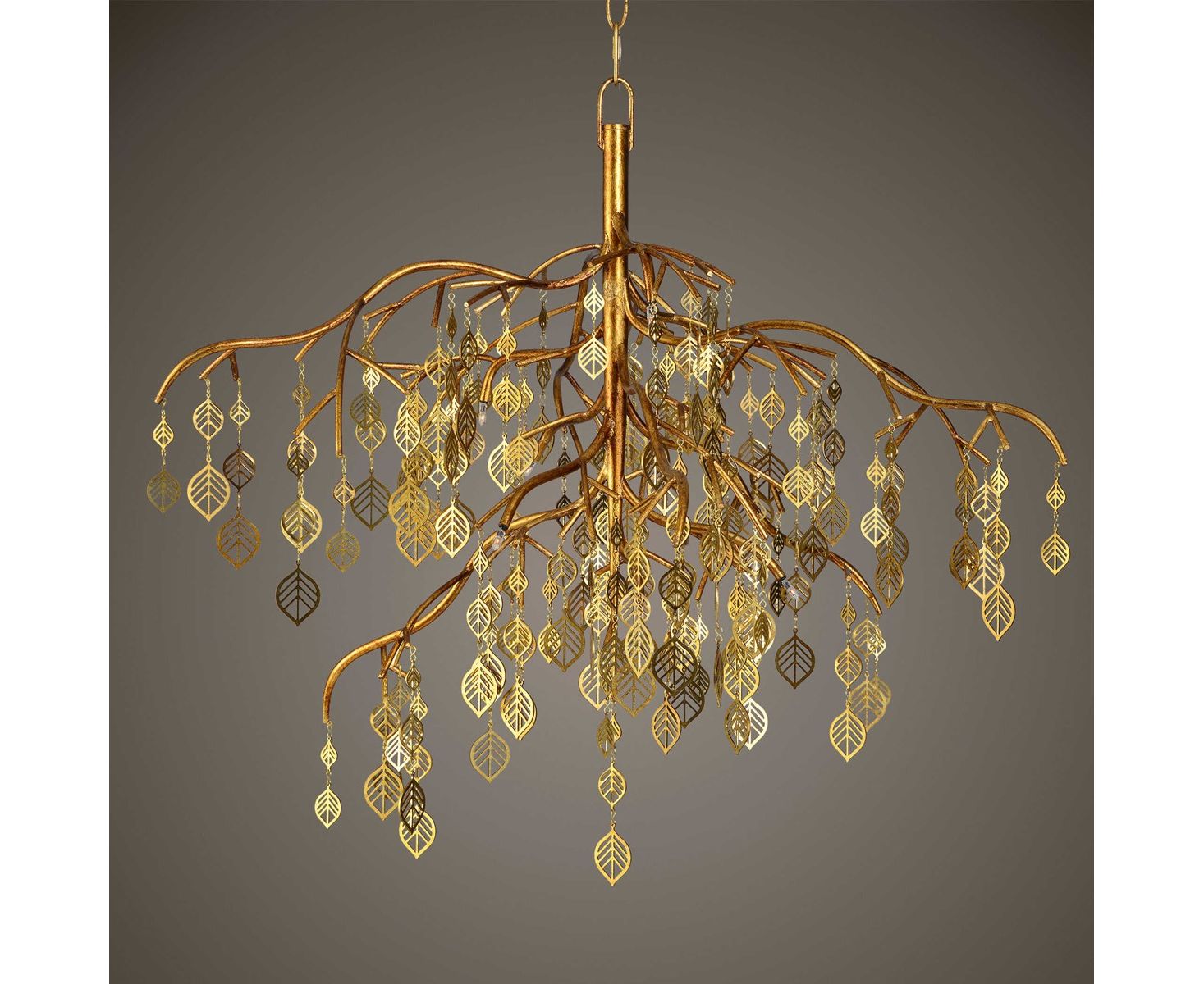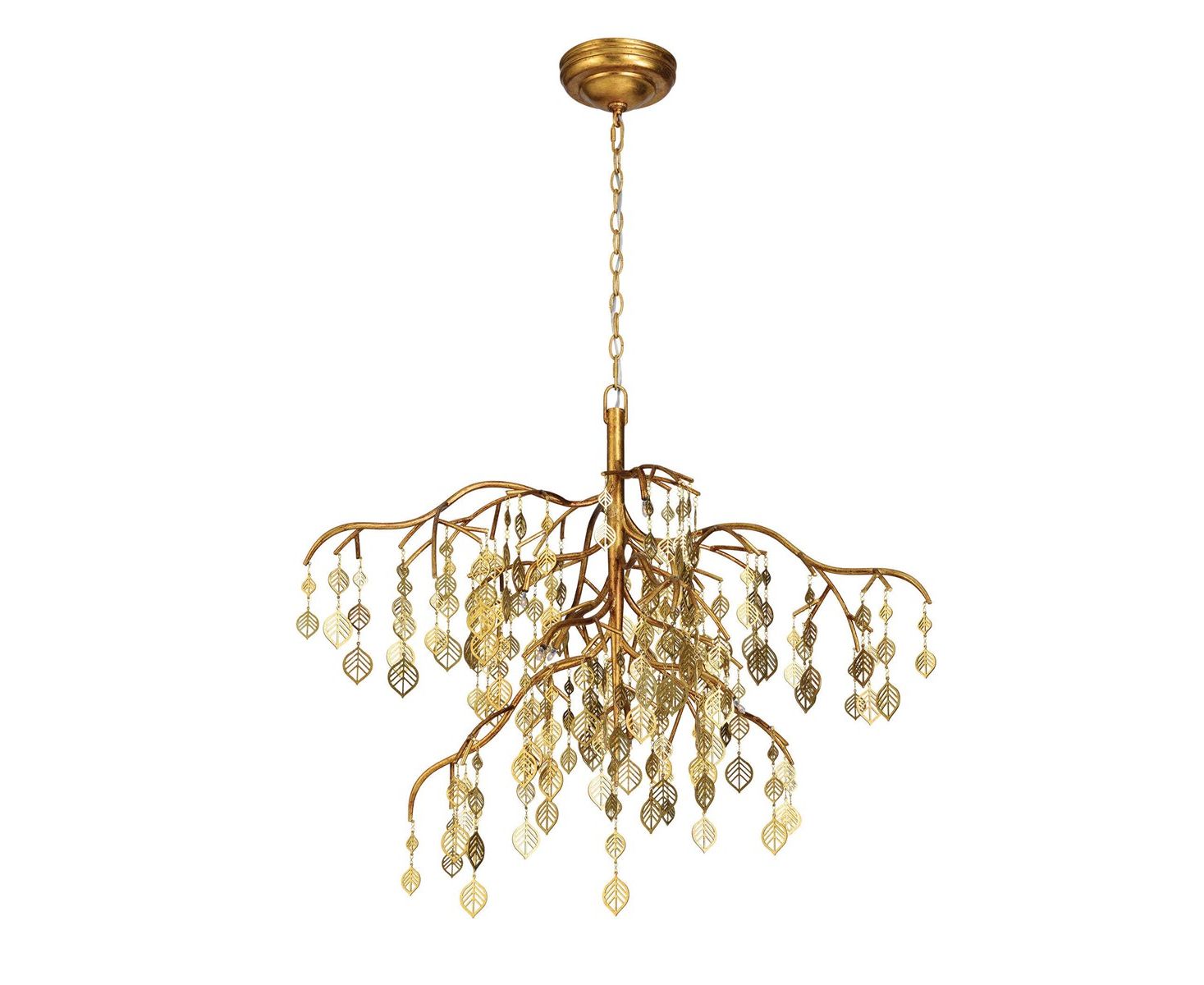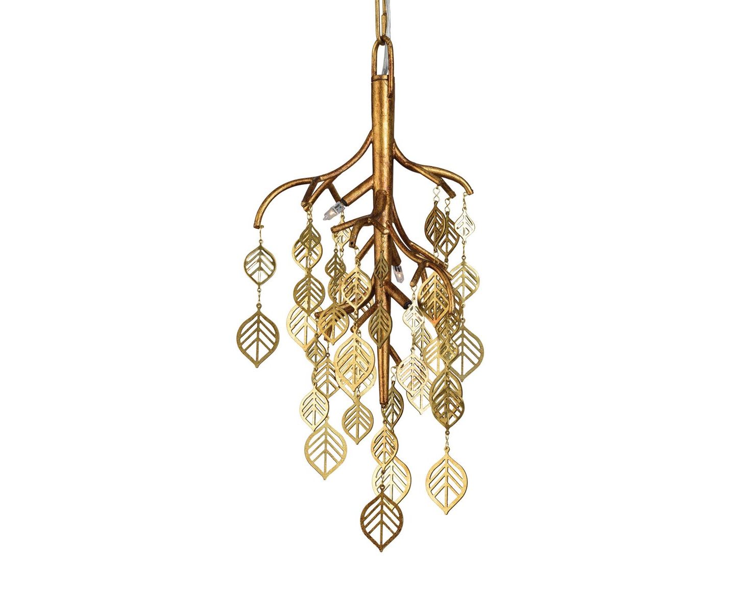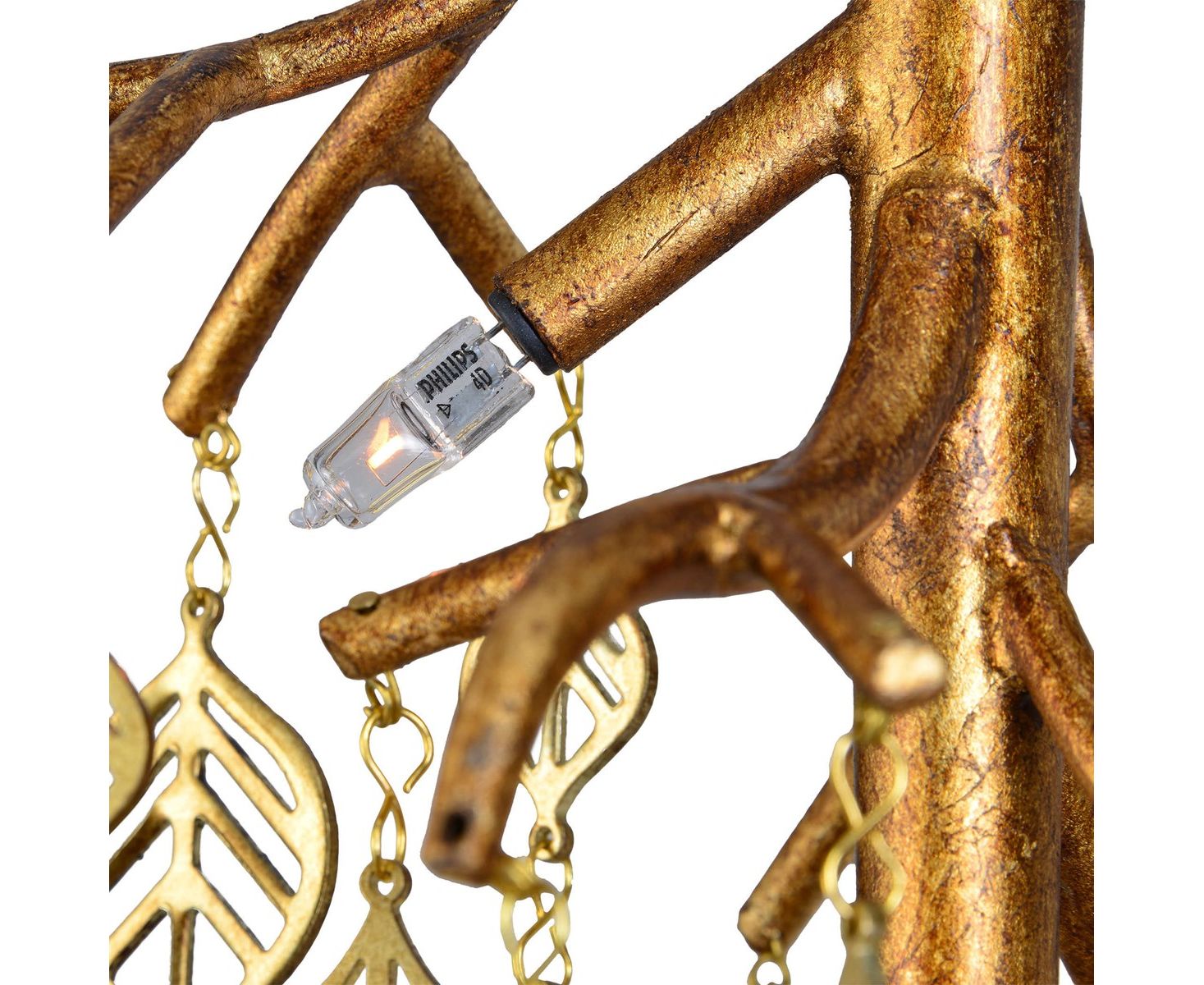 Этот мини-кулон с листвой имеет теплую отделку из сусального золота с 3-мя миниатюрными галогенными лампами низкого напряжения мощностью 20 ватт, встроенными в листья.