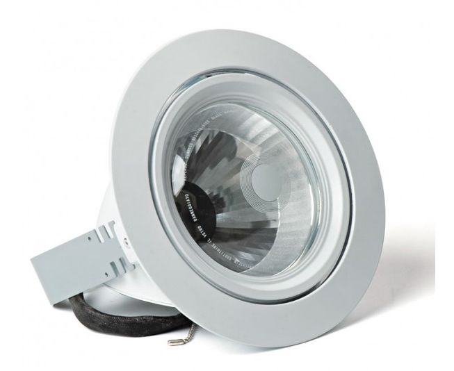 Встраиваемый светильник для одной металлогалогенной лампы мощностью 35, 70 или 150 Вт. Литой алюминиевый корпус. Отражатель из шлифованного алюминия. Рассеиватель из прозрачного стекла. Оптическая часть выдвигается на угол до 60° от горизонтальной оси и поворачивается на 355° вокруг вертикальной оси.