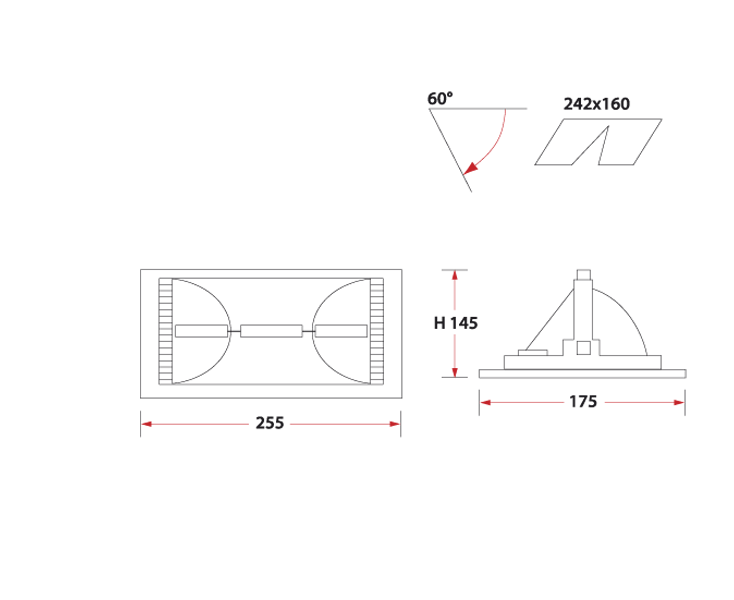 175 х 255 мм, высота 145 мм