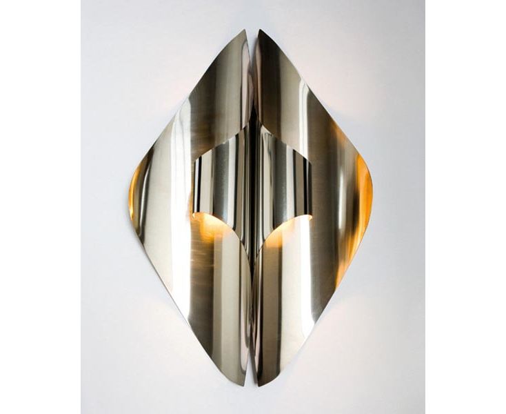Прекрасно отражая все вокруг, в том числе и свет настенный светильник получается необычным и интересным. Отделка - нержавеющая сталь.