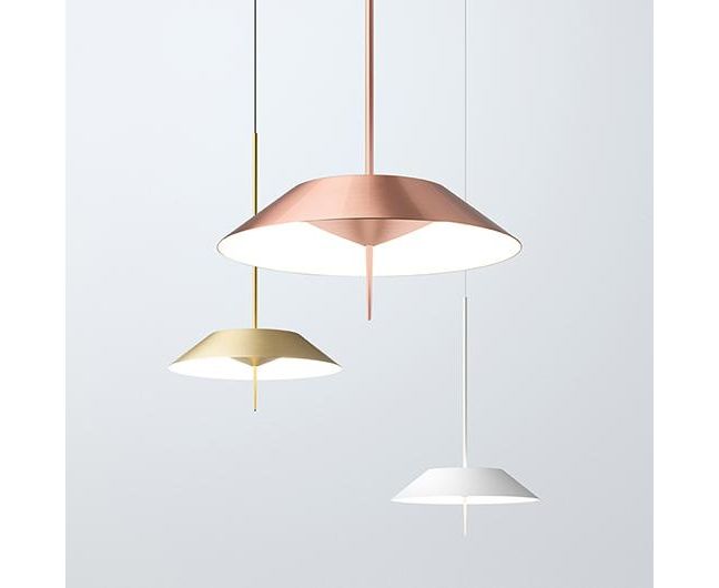Vibia производит две модели подвесных светильников Mayfair, одну с одним рассеивателем и другую с тремя рассеивателями для освещения большей площади.