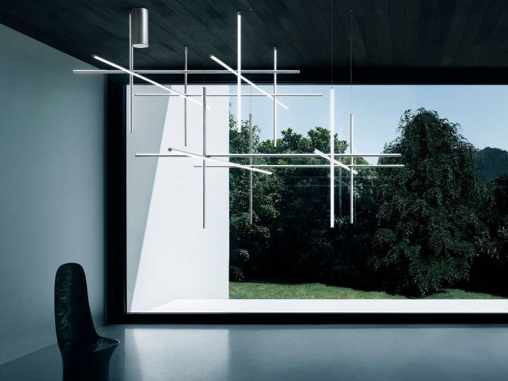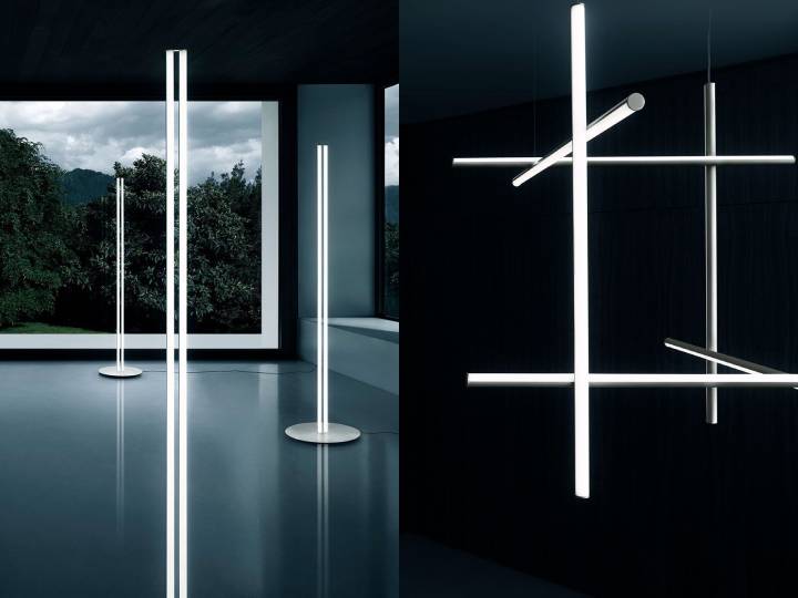 Coordinates от Flos - это система освещения, состоящая из горизонтальных и вертикальных полосовых светильников, которые образуют освещенные сетчатые структуры различной сложности.