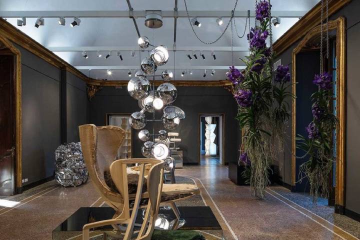 Экспозиция Tom Dixon располагалась в историческом Palazzo в центре Милана, где находится штаб-квартира британского аукционного дома Sotheby's в Италии - лучшей платформы для демонстрации двадцати объектов, которые напоминают часть истории бренда, некоторые процессы производства, а также новые разработки, которые представляют будущее бренда. Посетителям смогли ознакомиться с тщательно подобранной подборкой дизайнов, основой которых являлись культовые коллекции MIRROR BALL и MELT.