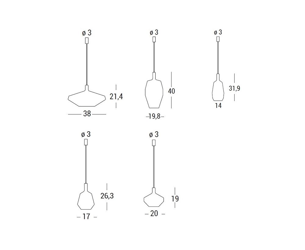 19.8 см, высота 40 см (без учета подвеса)