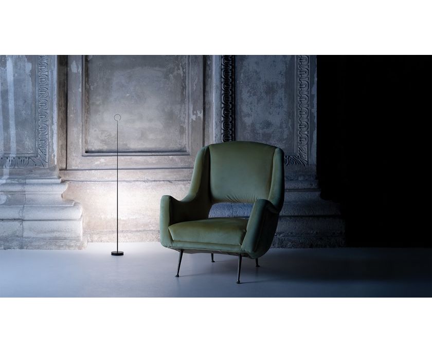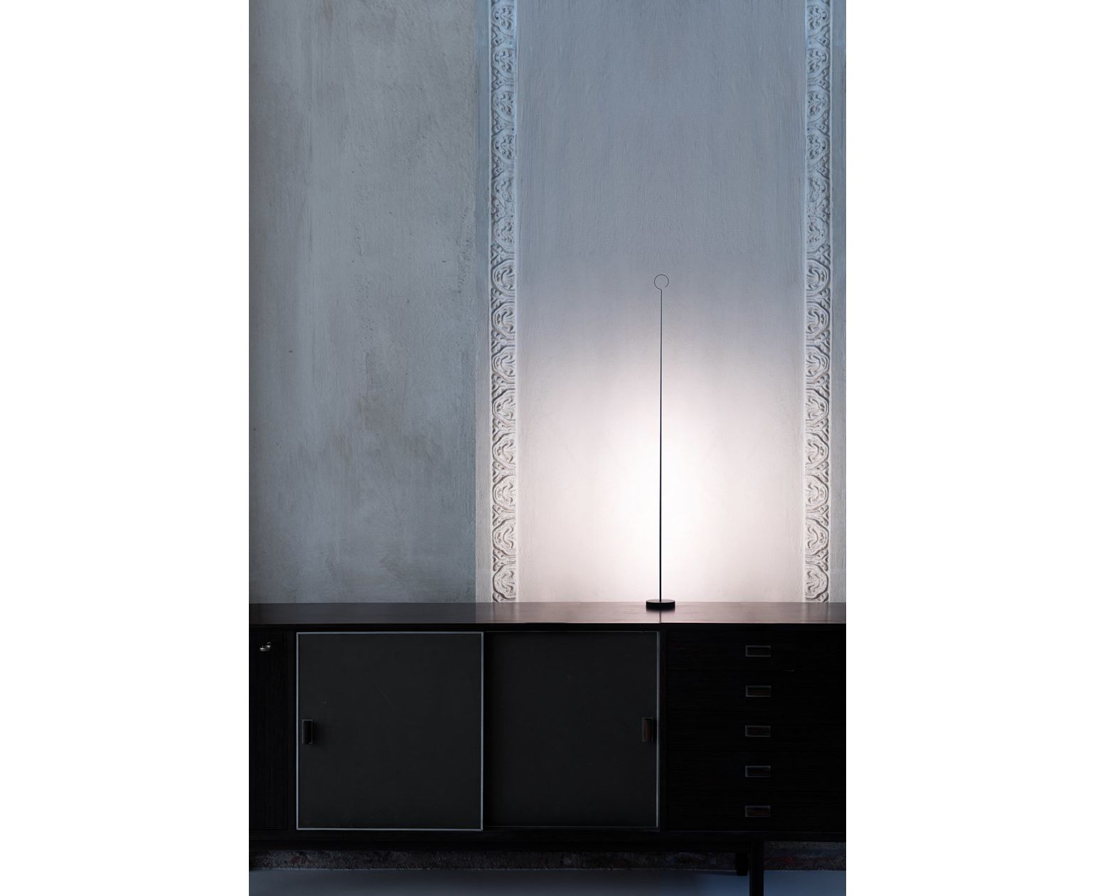 Anima - это лампа, которую можно использовать на полу или на низкой мебели, чтобы держать ее ближе к себе или использовать для создания глубины. Это лампа, которой нужно наслаждаться из-за ее важности и живописной силы. Тонкая, легкая, эфемерная и абстрактная скульптура, это невесомая идеограмма, отсутствие и сущность света. Это эмоция непрямого света с эстетикой, балансирующей между скандинавским и японским дизайном, двумя явно далекими культурами, но на самом деле очень близкими. Вверху тонкий металлический открытый кружок, почти крючок для души рыбаков. Он родился из размышлений Давиде Гроппи и Джорджо Рава об искусстве 20-го века и о «тонких скульптурах» Фаусто Мелотти, метафизической материи, вторгающейся в пространство с легким и музыкальным ритмом.