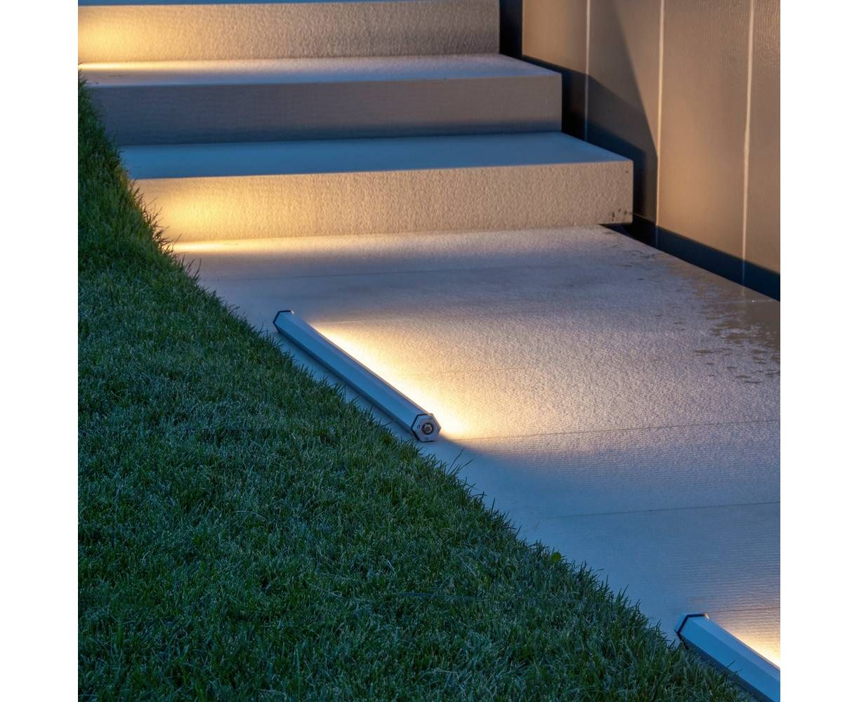 Светильник Esagono выделяется исключительной гибкостью. Благодаря своему восьмигранному сечению он может размещаться у основания стен или оград, может использоваться как столбик в саду или просто крепиться к стене. Свет можно направлять по желанию. Сделан из окрашенного алюминия и выпускается в двух размерах.