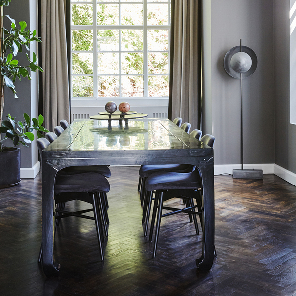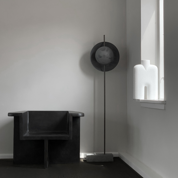 Вдохновленный движением архитектурного брутализма середины 20-го века и архитектурными шедеврами Ле Корбюзье и Фрэнка Ллойда Райта "Сумерки и Лампа Dawn бросает вызов восприятию материалов и формы. С его многослойными оттенками, которые игриво распределяют свет в ритме экспозиции. Ощущение, почти похожее на затмение , способствует созданию интимной и уютной атмосферы, создавая произведение искусства само по себе. Эти светильники стали новым способом представления и интеграции светового дизайна в схемы интерьера. Необработанная основа из окисленного алюминия ручной работы создает стабильность и непрерывность лампы, и при специальной обработке два алюминиевых абажура окисляются, образуя богатую текстуру и почти бетонную поверхность, которая придает глубину ровному свету.