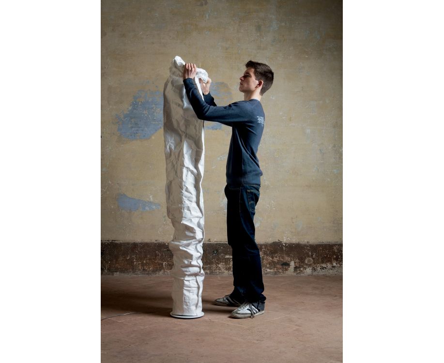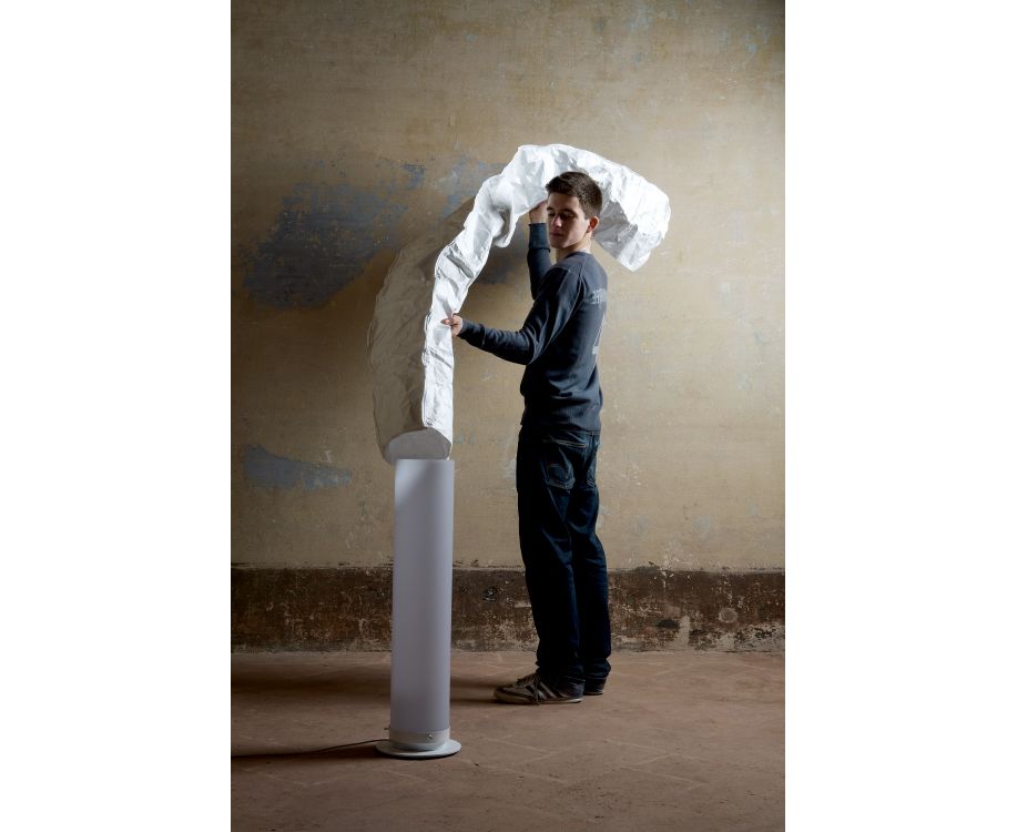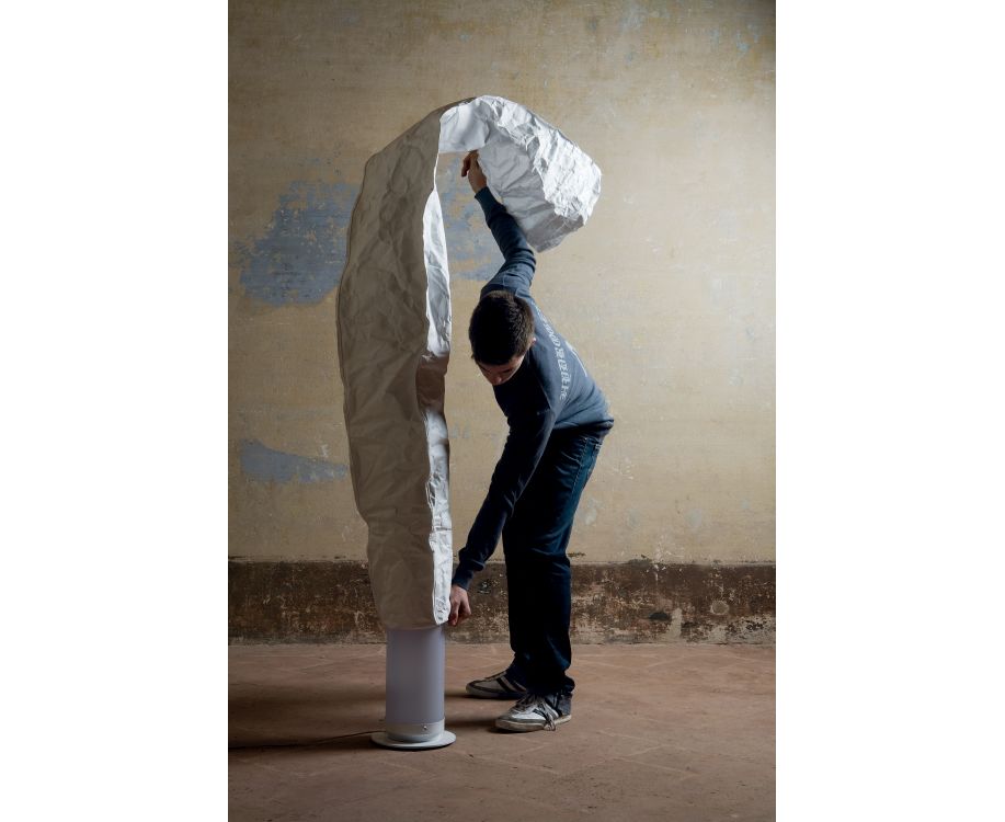 Напольный светильник с чистой белой полиэтиленовой тканью, пригодный для повторного использования, без токсичных веществ и водостойкий. Этот материал, который был запатентован и обычно используется в строительстве в течение многих лет для защиты зданий от влаги и погоды, находит с Dolcevita новое воплощение. Коническая форма частично конвертируется путем свободного перемещения, что позволяет моделировать, изменять высоту (от 170 до 210 см) и протирать материал, настраивая «тело» лампы и его световой эффект. Свет и конструкция, рассеиватель Dolcevita, полностью освещает и фильтрует мягкий, удобный свет, который подчеркивает текстуру материала, напоминающую рисовую бумагу.