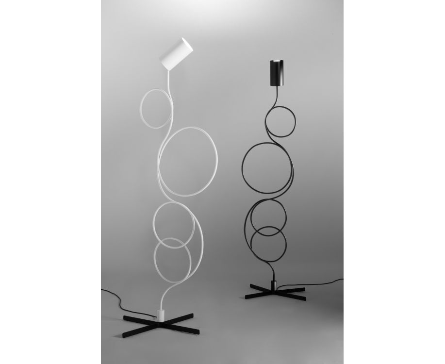 Коллекция гнутых металлических трубных ламп, которая создает легкое и гармоническое формальное развитие.