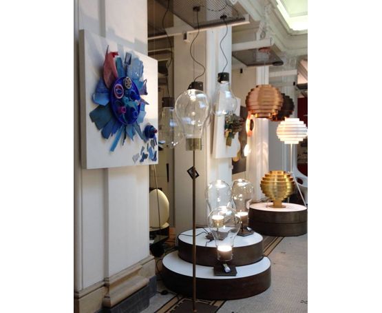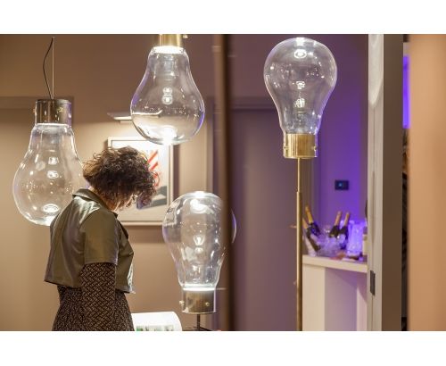 Выдувная коллекция из боросиликатного стекла, доступная в напольных, настольных и подвесных версиях. «Лампочка» старых времен была преувеличена до предела технической работоспособности.
