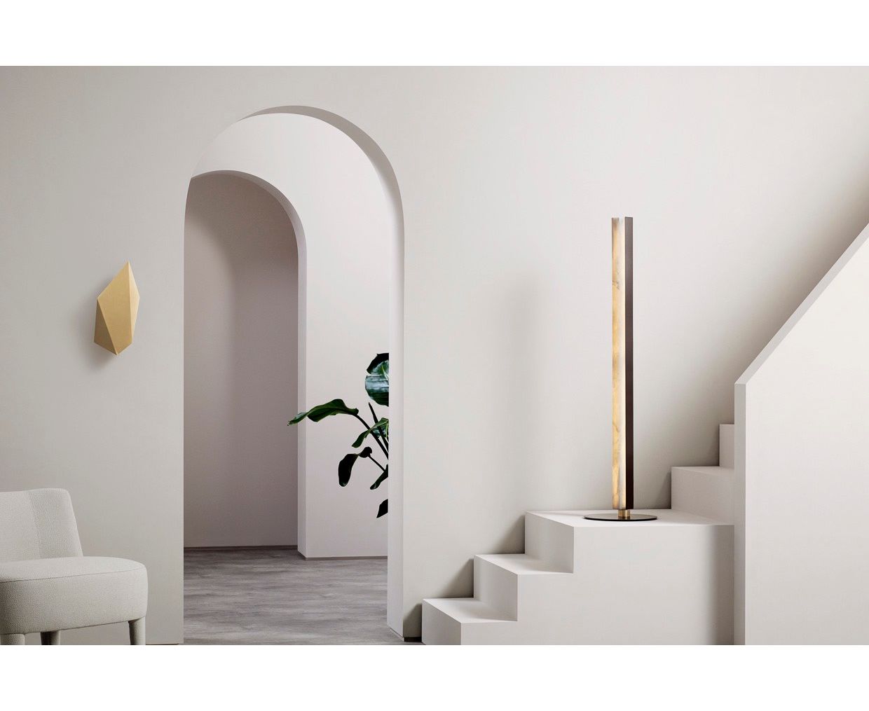 Архитектурный луч света, слитый с первоклассными материалами, такими как бронза, атласная латунь и шлифованный алебастр, создает элегантный напольный светильник, который создает особенный светвой эффект и может быть диммируемым.