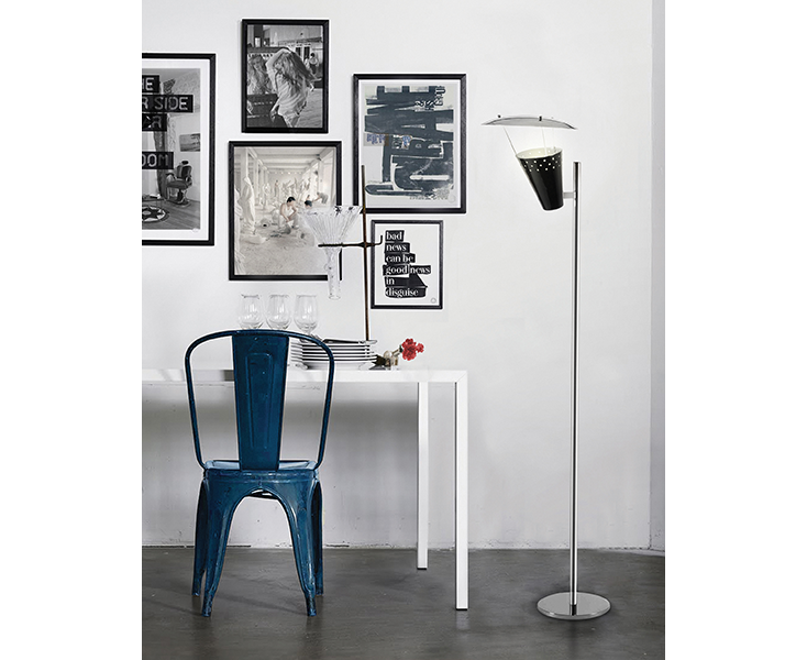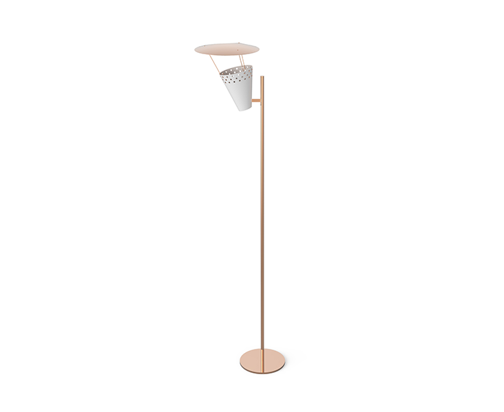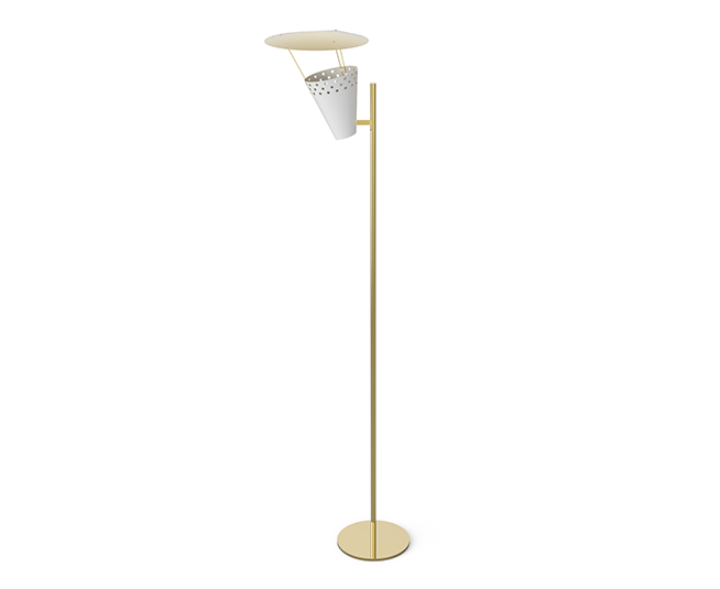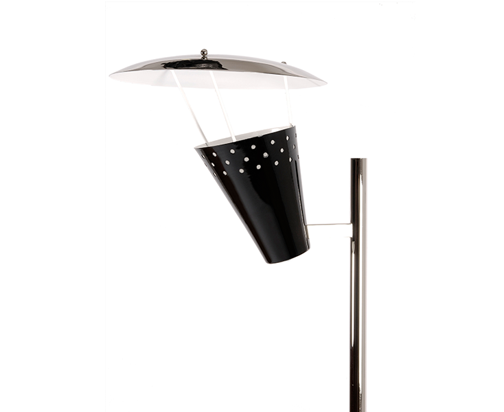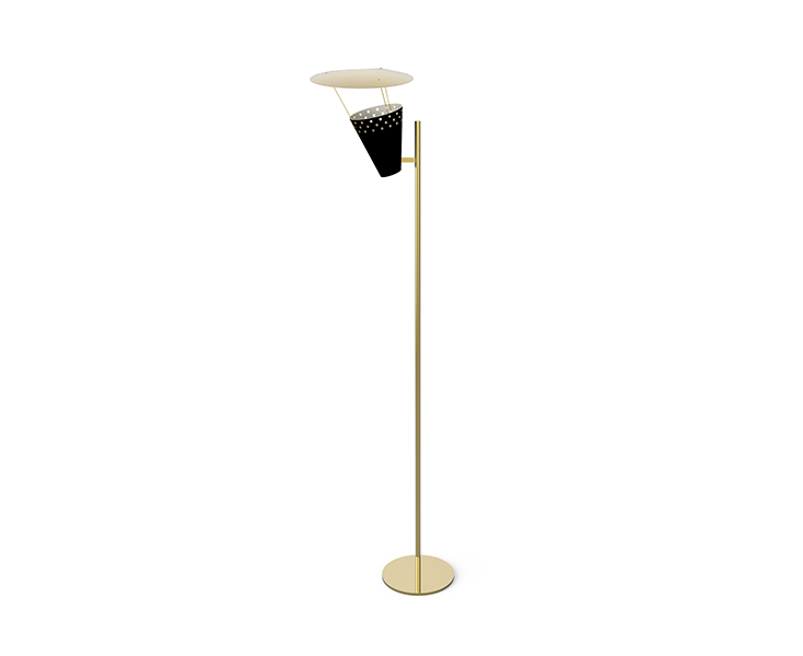 Современный mid-century дизайн вдохновил на создание торшера Lee. Вдохновленный классическим микрофоном 1950-х годов в винтажном стиле на вершине сцены, этот светильник привлечет внимание каждого. Lee идеально подходит для лофта и интерьера mid-century. Он является идеальным угловым торшером для любой требовательной обстановки и является прекрасным дополнением к коллекции DelightFULL Heritage. Этот винтажный торшер изготовлен вручную из латуни, а его абажуры из алюминия имеют глянцевую черную поверхность и внутреннюю отделку в матово-белом цвете. Верхняя крышка покрыта никелированной и матовой белой отделкой.