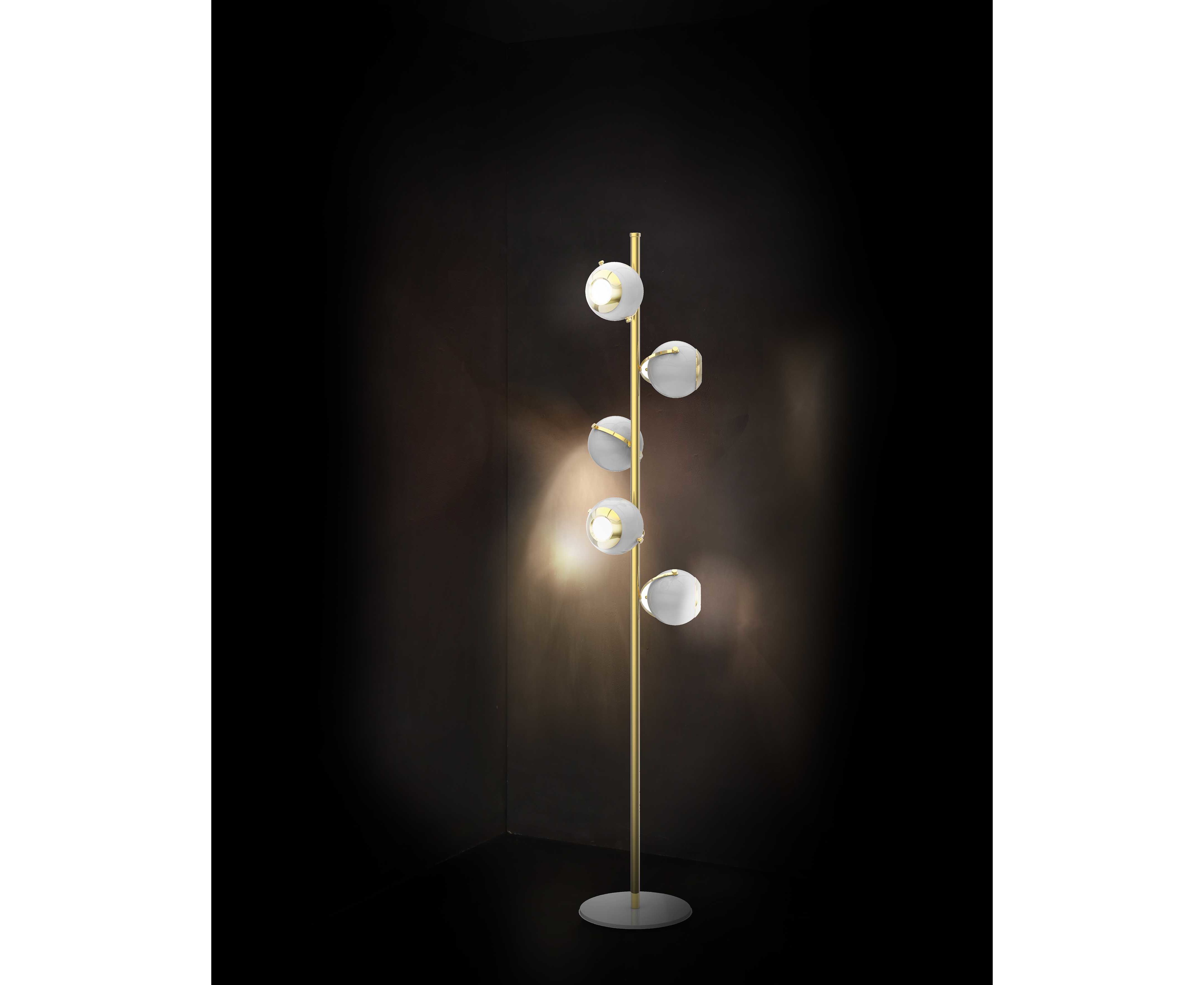 Scofield - это необычный торшер с пятью хромированными абажурами, опирающимися на белое латунное основание. Каждый источник света на кронштейне вращается отдельно, обеспечивая различную фокусировку. Благодаря матово-белому и никелированному покрытию торшер можно кастомизировать в соответствии с любым цветом RAL по вашему выбору, добавив более индивидуальную и гостеприимную атмосферу в ваш современный дизайн интерьера.