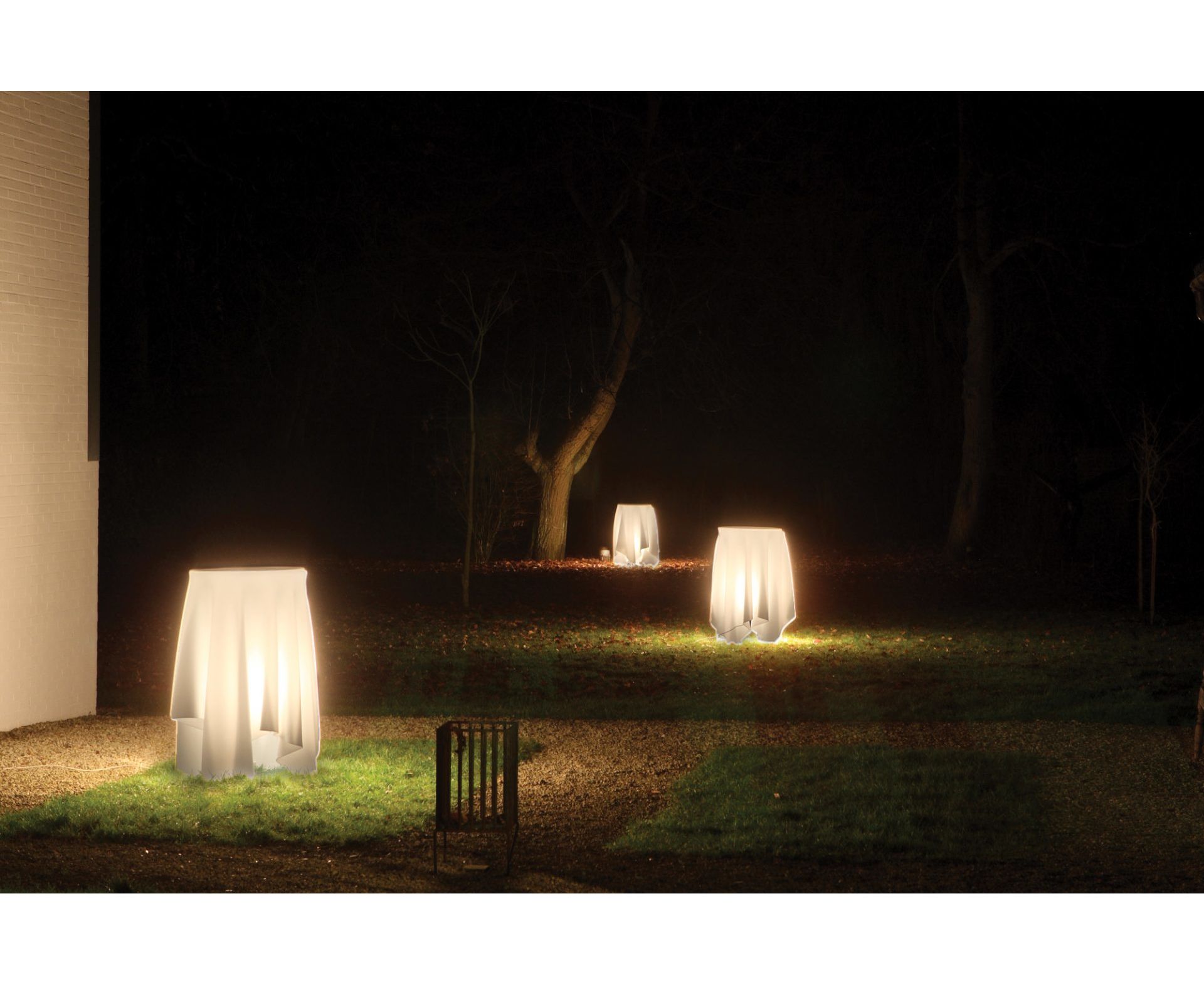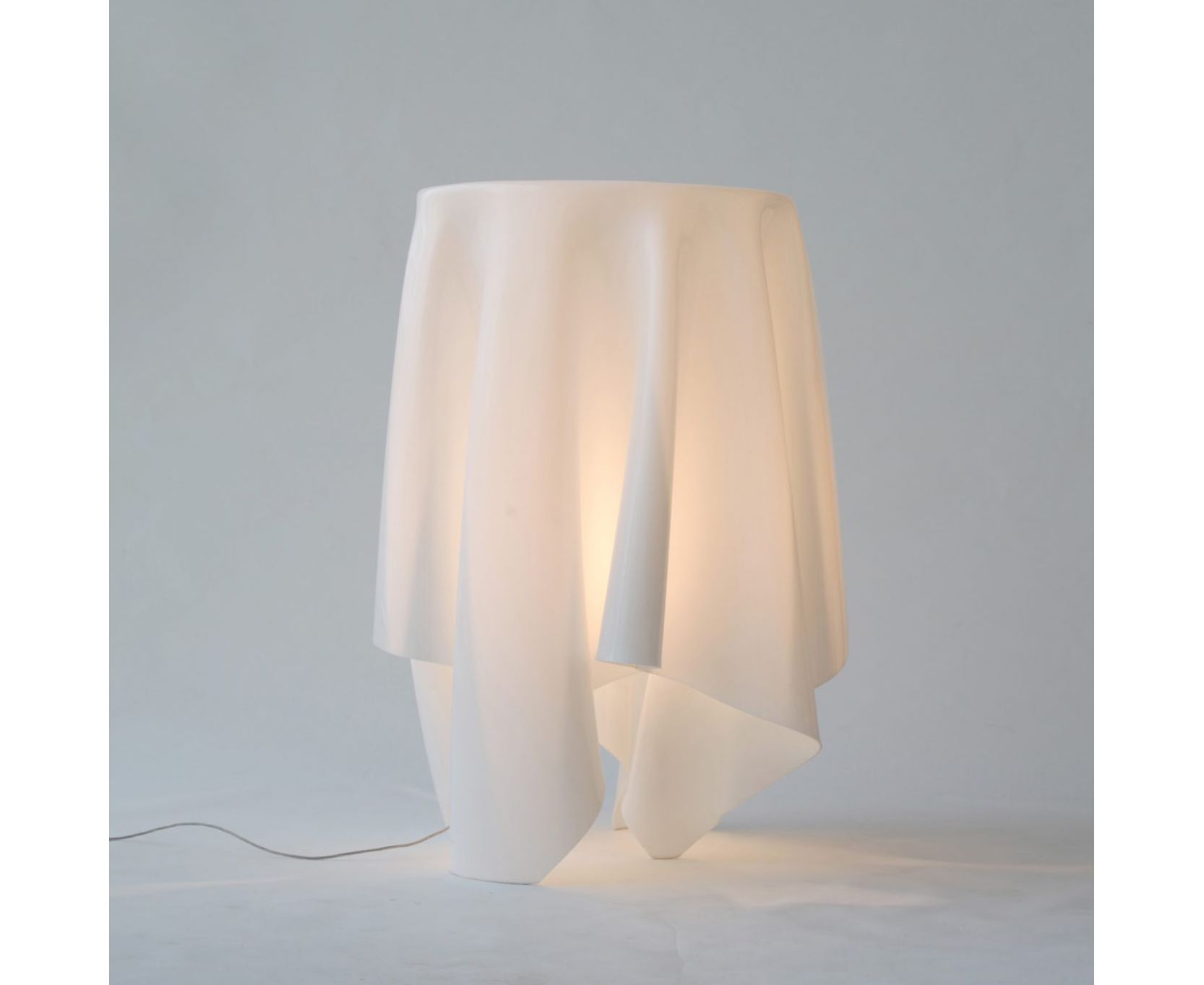 Синтетическая драпировка образует накрытый стол и в то же время структуру стола. Полностью напоминает накрахмаленную пустую скатерть, но изготовлена из самонесущего пустого пластика. Опционально доступны перезаряжаемые световые модули, чтобы столы можно было размещать везде. Через семь часов столы объявляют об окончании вечеринки. Время перезарядки!