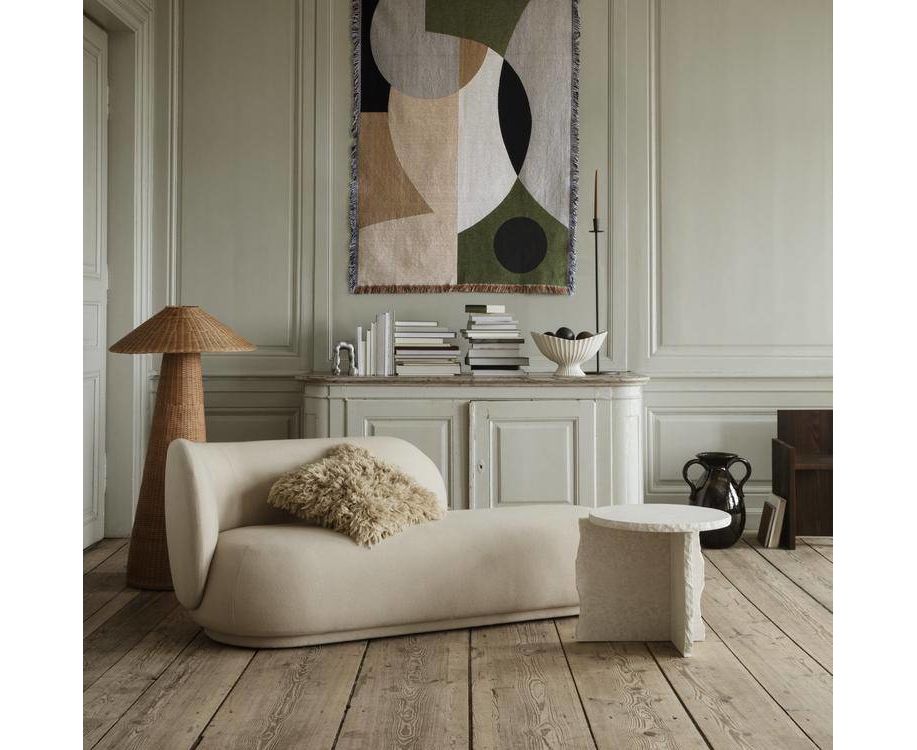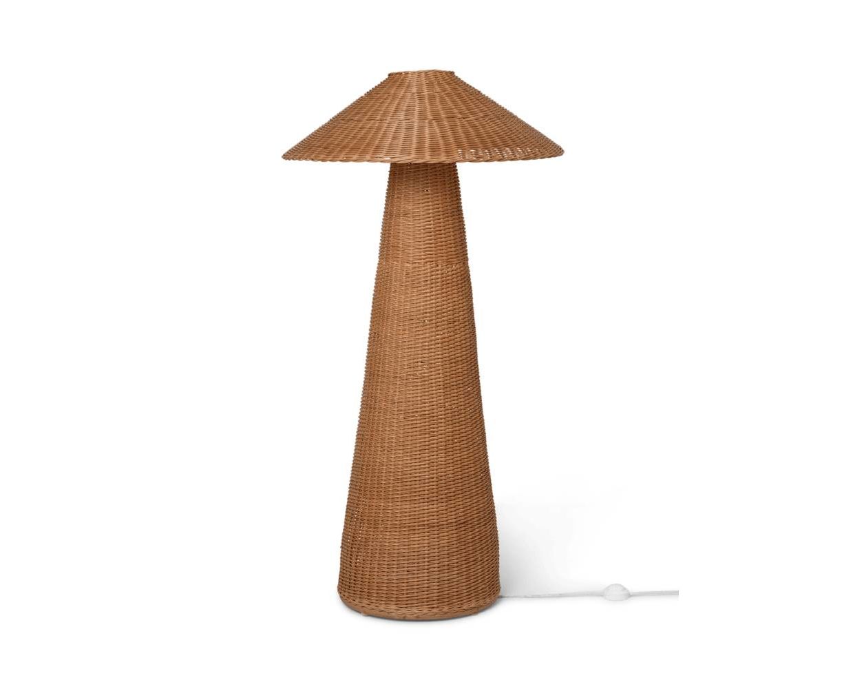 Торшер выполнен из заплетенного вручную из натурального ротанга, подчеркивает прекрасный контраст между геометрическими формами и органическими текстурными качествами материала. Этот торшер имеет негабаритные размеры и мягкий, удобный свет, в то время как абажур позволяет небольшие проблески освещения через плетеный ротанг и добавляет текстуру жилому пространству.