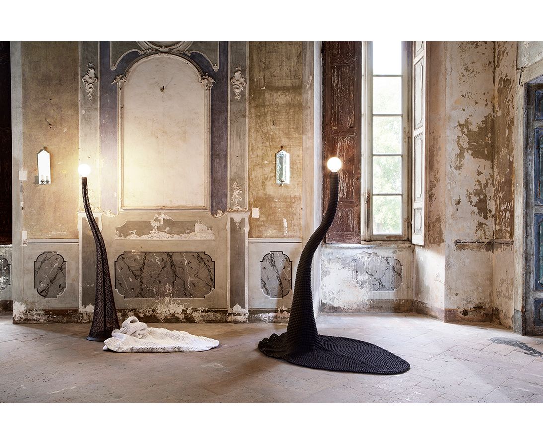 Светильник Penelope, который получил свое название от ткача в мифе об Одиссее, женском символе интеллекта, терпения, ловкости и искусной приспособляемости к постоянно меняющейся природе реальности, способной восстанавливать и поддерживать дух дома. Задуманная как эволюция легкого тканого ковра, Penelope - больше, чем просто аксессуар для освещения. Фактически, в контексте функциональности современной жизни, она способна украшать, обставлять и определять пространства нашей повседневной жизни и в то же время стимулировать чувства и вызывать древние истории.