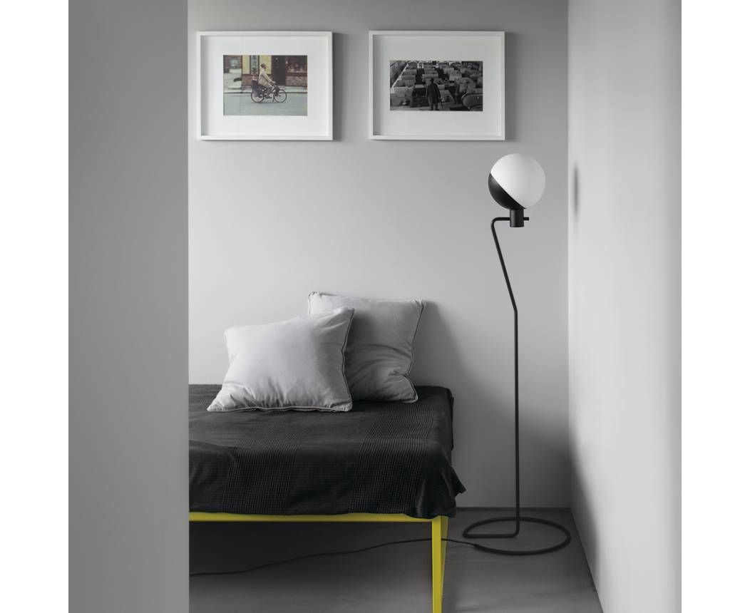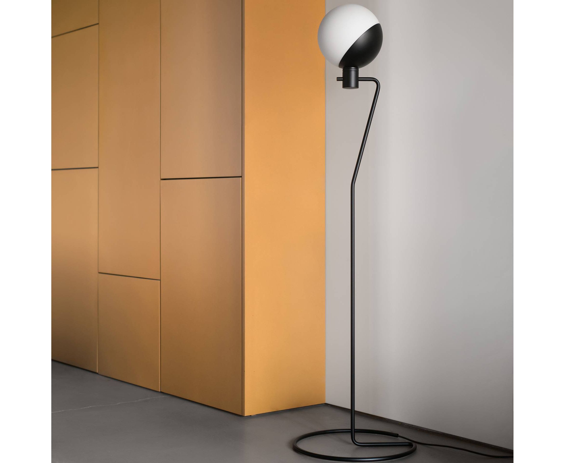 Стальной корпус с порошковым покрытием сформирован, сварен и собран вручную. Рассеиватель из опалового стекла с тройным покрытием (сферический оттенок), который вращается вокруг своей оси бесконечно. Встроенный переключатель включения / выключения и дополнительный встроенный диммер. Телескопический рычаг с регулируемой высотой. Использование внутри помещений.