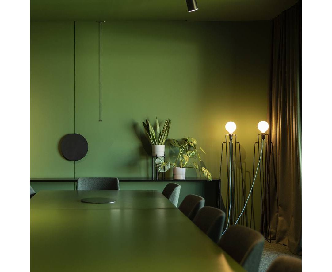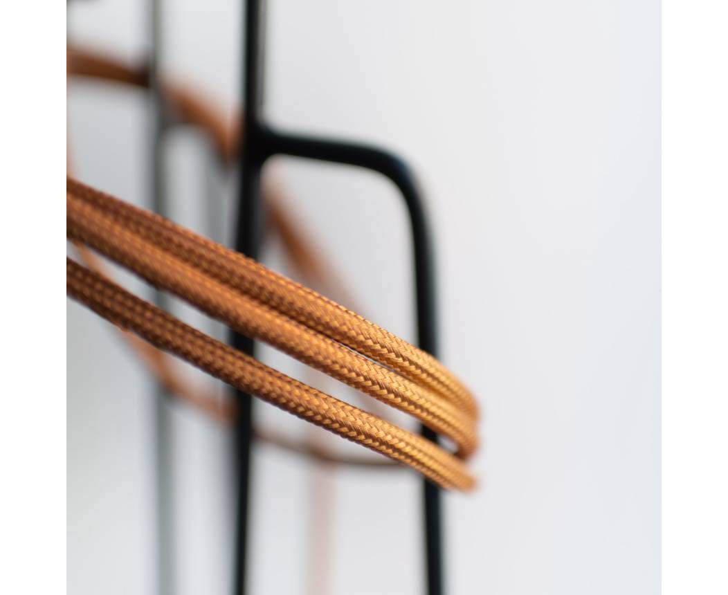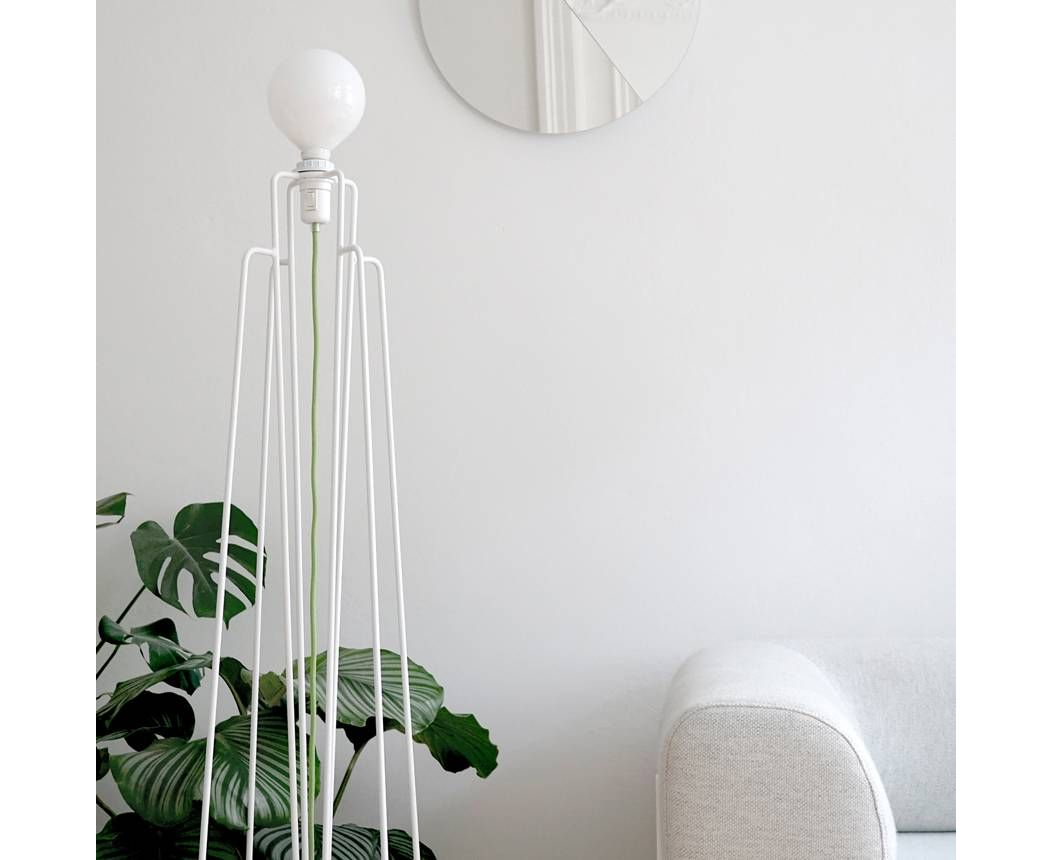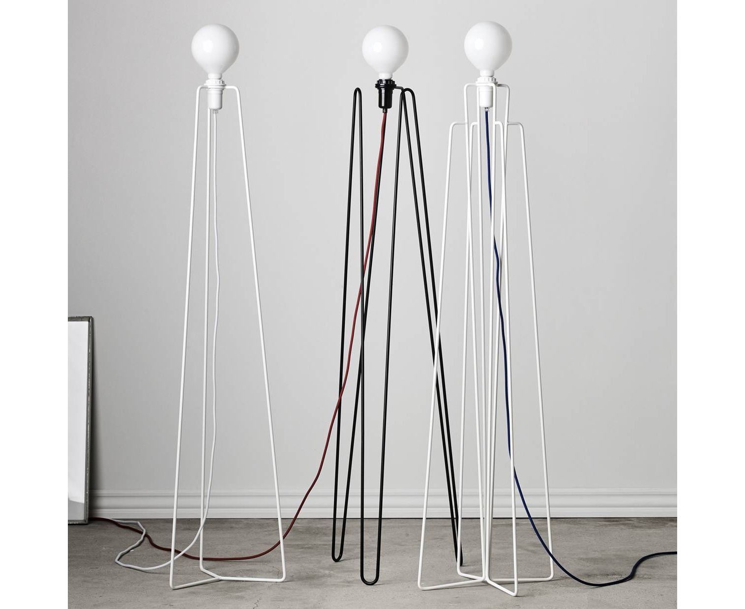 Стальные рамы формуются, свариваются и собираются вручную. Покрытые порошком. Модель представляет собой линейку осветительных приборов, отличающихся своими геометрическими формами и легкими и простыми силуэтами. Они поставляется в трех различных конструкциях рамы и двух разных цветах рамы (черном и белом). Кроме того, чтобы добавить нотку индивидуальности, вы можете выбрать один из 7 цветов текстильного кабеля. Использование внутри помещений.