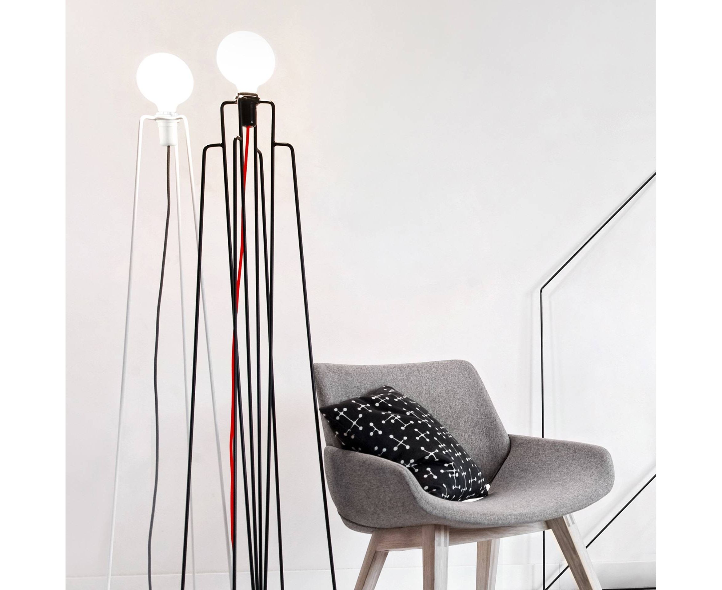 Стальные рамы формуются, свариваются и собираются вручную. Покрытые порошком. Модель представляет собой линейку осветительных приборов, отличающихся своими геометрическими формами и легкими и простыми силуэтами. Они поставляется в трех различных конструкциях рамы и двух разных цветах рамы (черном и белом). Кроме того, чтобы добавить нотку индивидуальности, вы можете выбрать один из 7 цветов текстильного кабеля. Использование внутри помещений.