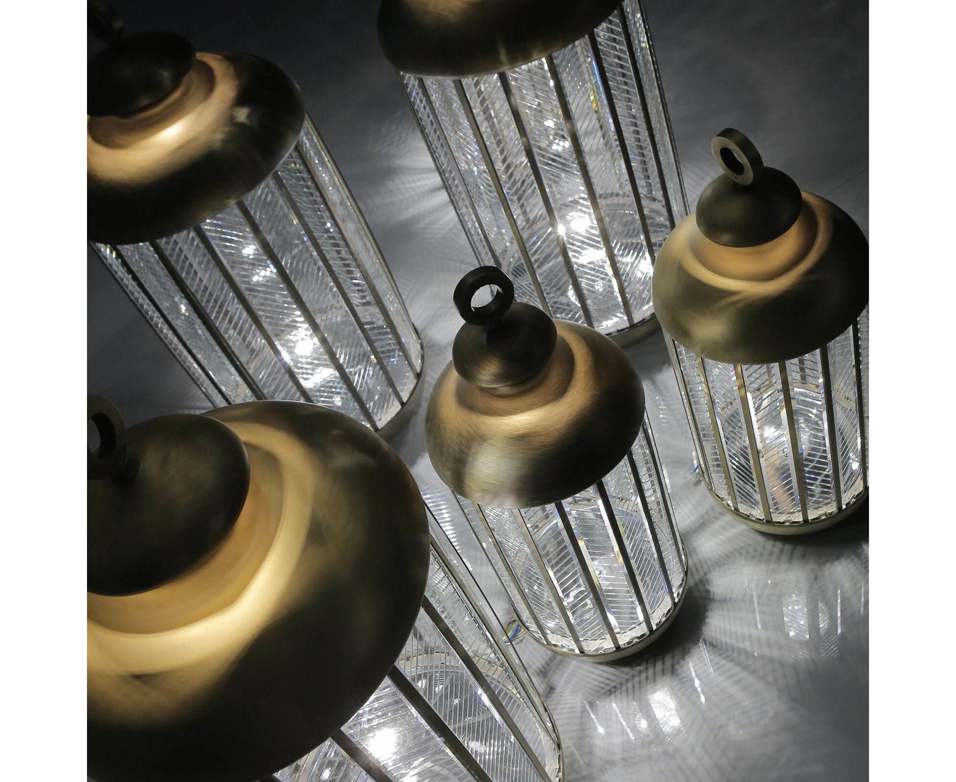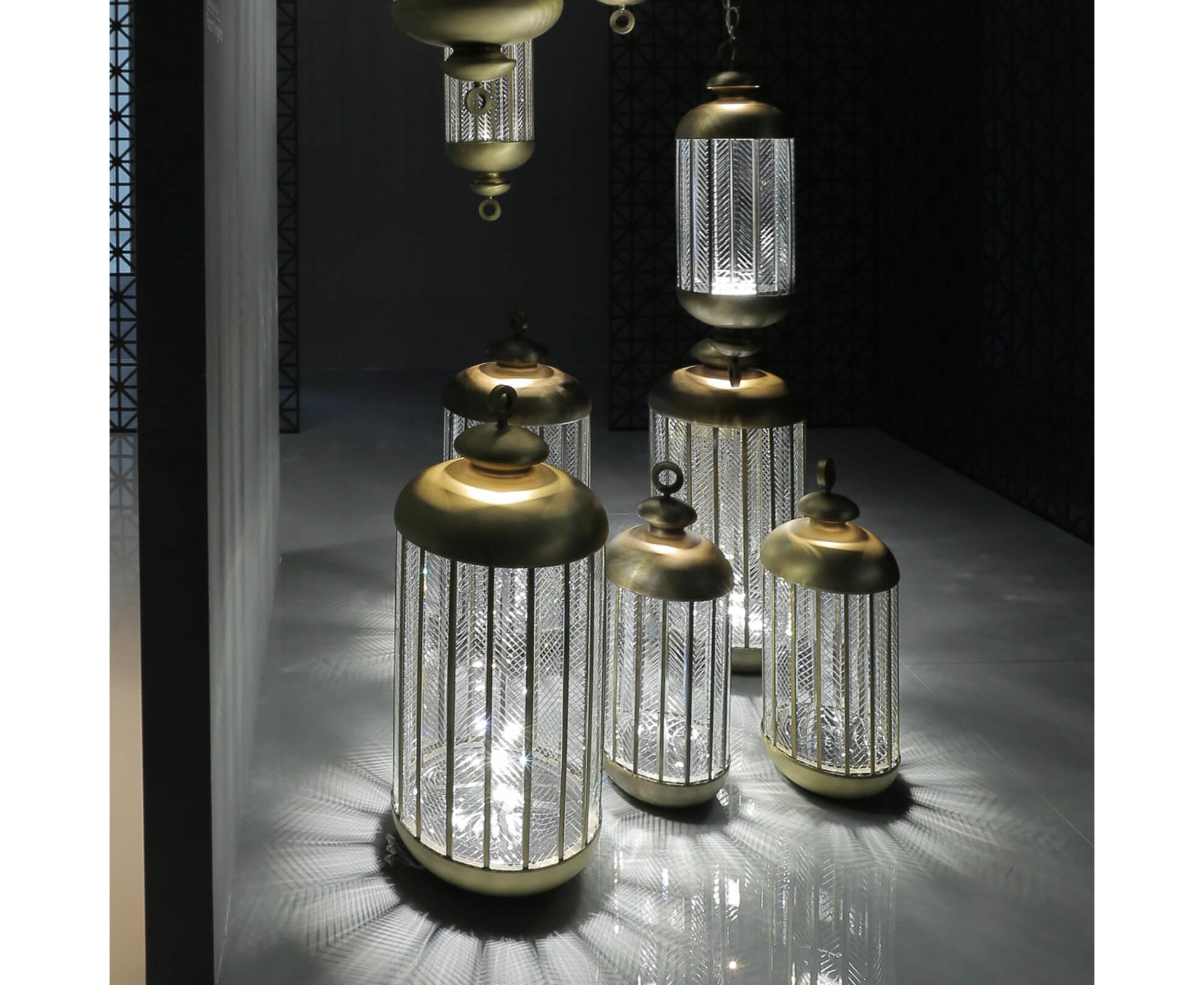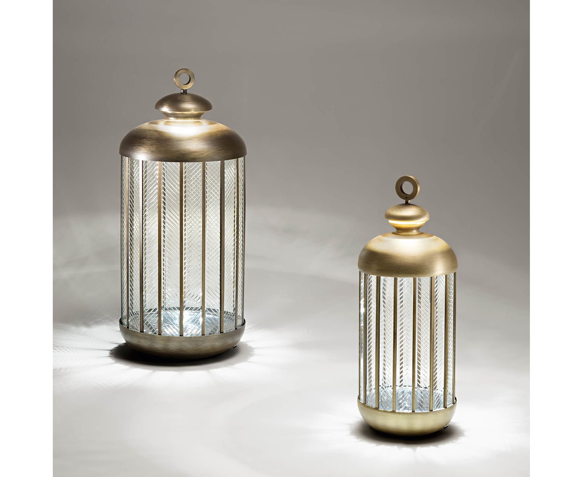 Напольный светильник из металла с отделкой под старинное золото и диффузором из резного стекла. Доступен в разных цветах.