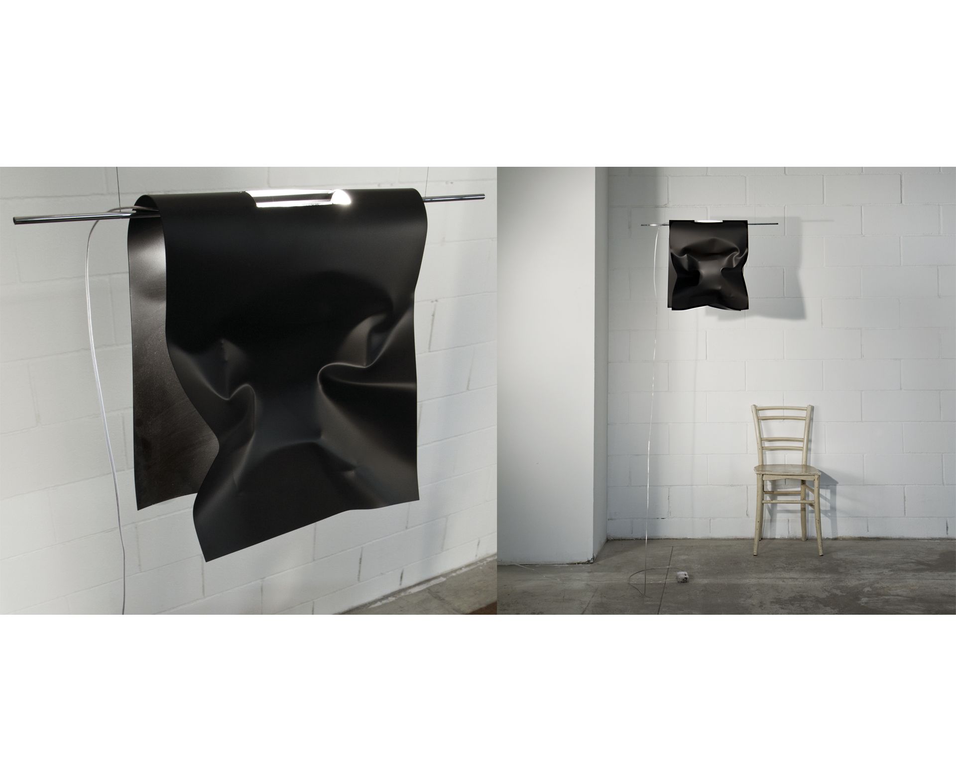 Выходящий светодиодный свет изменяется в зависимости от цвета листа, помещенного в лампу: теплее с золотом, бронзой и медью, холоднее с серебряным листом. Полный белый цвет вместо этого полностью отражает концепцию «подвешивания одежды».
