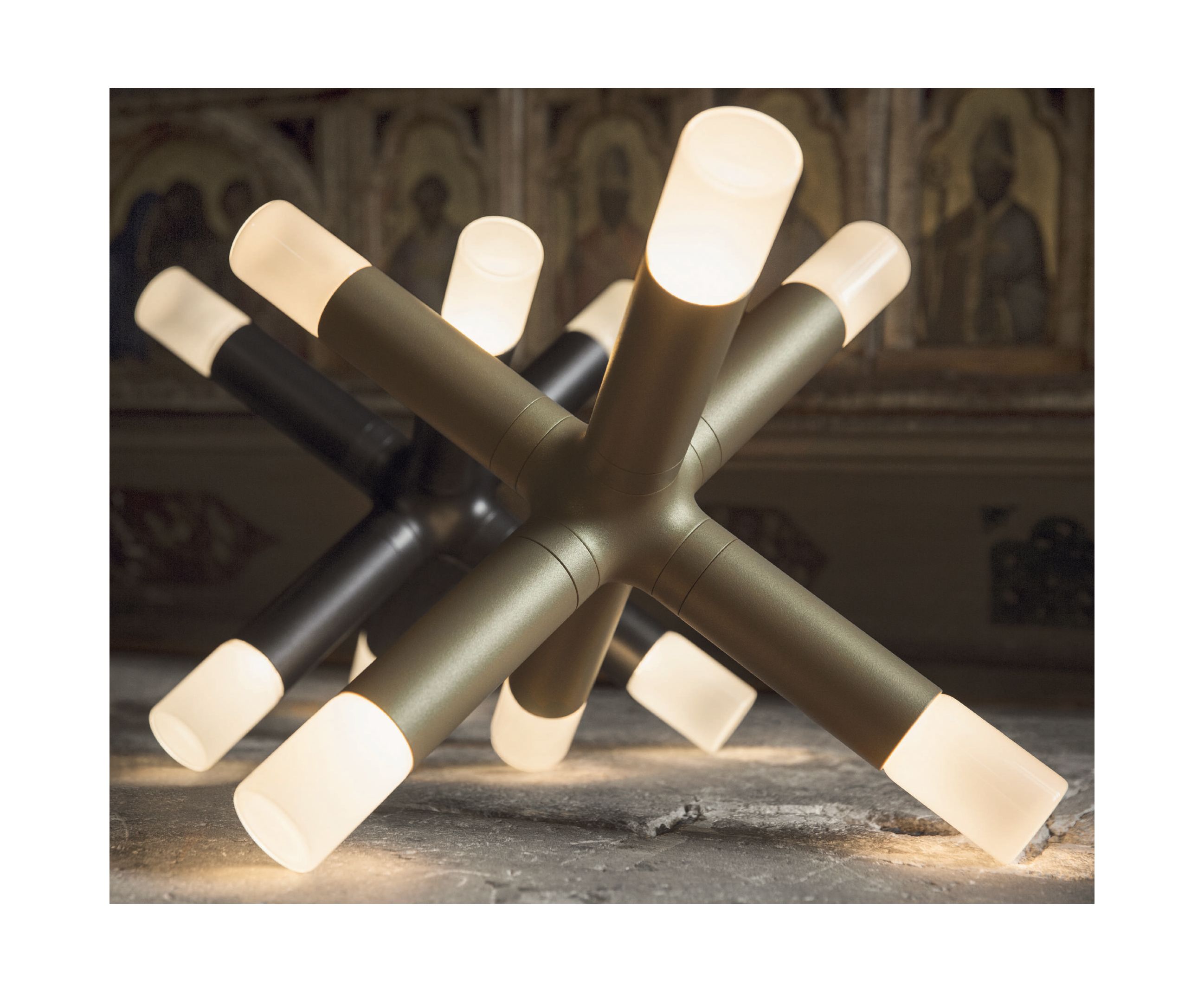 Mystēs - это новая коллекция светильников от греческой этимологии названия до дизайна, все в этой лампе говорит о ее стремлении воплотить в себе самую основную идею освещения. Как образный архетип, искра мерцает в шести вершинах структуры, обеспечивая постоянное освещение. Лампа тонкая и имеет сильный центр, с декоративным узлом посередине, где линии сходятся со всех сторон - и ее можно свесить с потолка или использовать в качестве торшера, как светящееся пятно, лишенное ортогональности.
