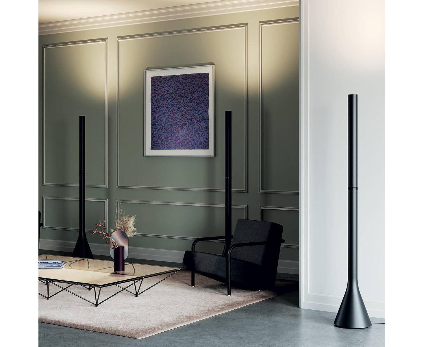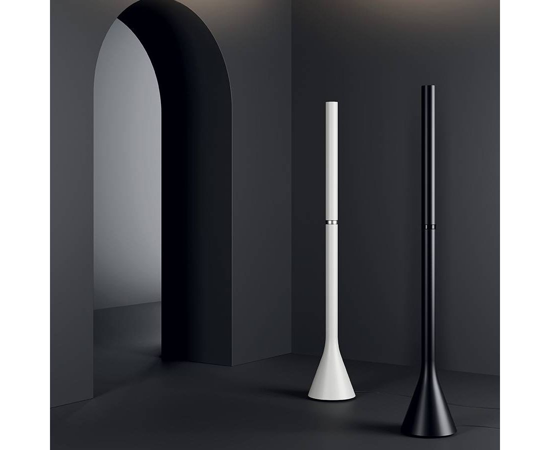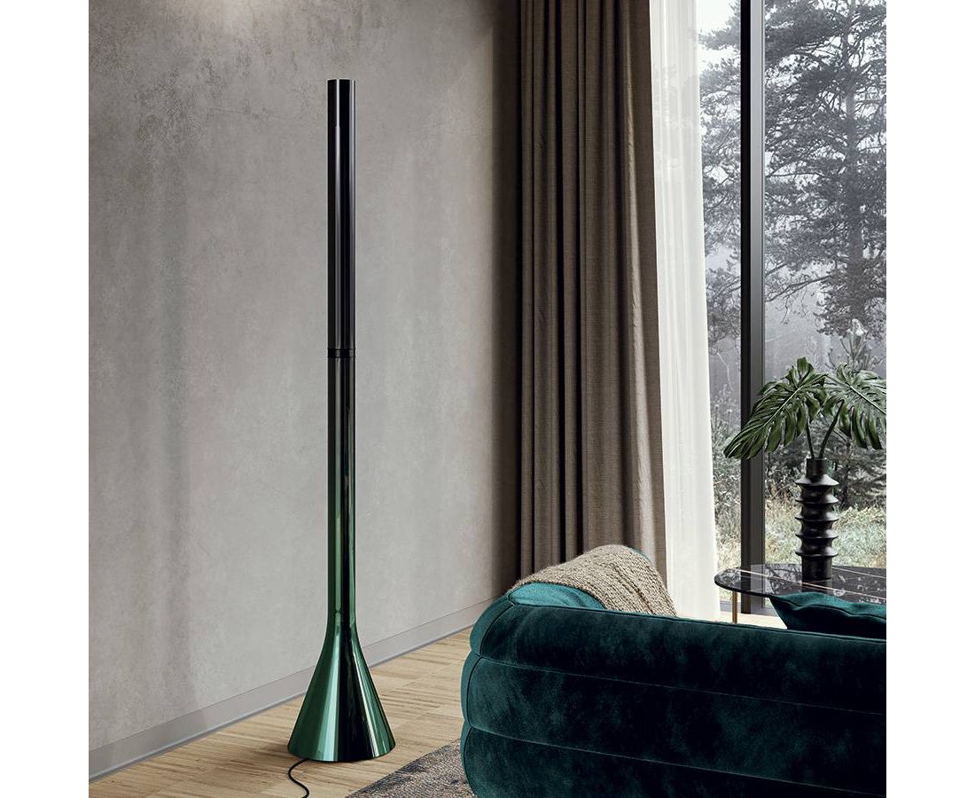 Изящная металлическая структура Croma, проецирующая лучи света вдоль стен по направлению к потолку, напоминает о динамизме музыкальной ноты, в честь которая она получила свое название. Напольная лампа общей высотой 186 см опирается на коническое основание, обеспечивающее устойчивость, из которого поднимается вытянутый стержень, почти исчезающий в луче света, производимом источником светодиодного излучения. Кольцо, расположенное на середине ноги торшера, позволяет пользователю включать и выключать светодиодный модуль. Croma выпускается с четырьмя уникальными отделками.