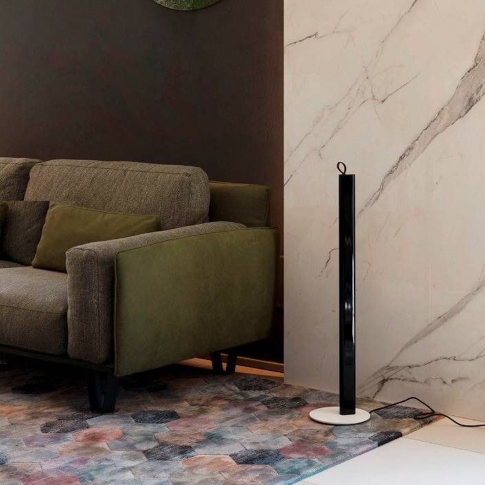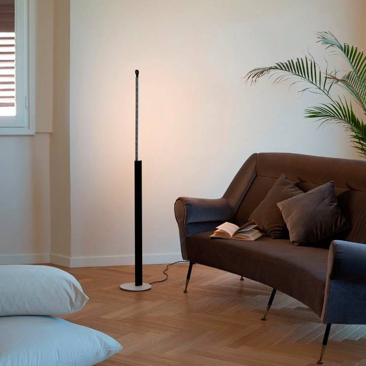 Торшер Metrica является идеальной лампой в гостиной, он излучает рассеянный свет в окружающей среде, направляя свет к стене, избегая прямых бликов. Он характеризуется полированным черно-белым корпусом, опирающимся на полированное белое круглое основание. Светодиодный источник света скрыт внутри опоры, которая образует основание, он загорается, как только его извлекают, постепенно увеличивая интенсивность, пока не достигнет своего максимального положения.