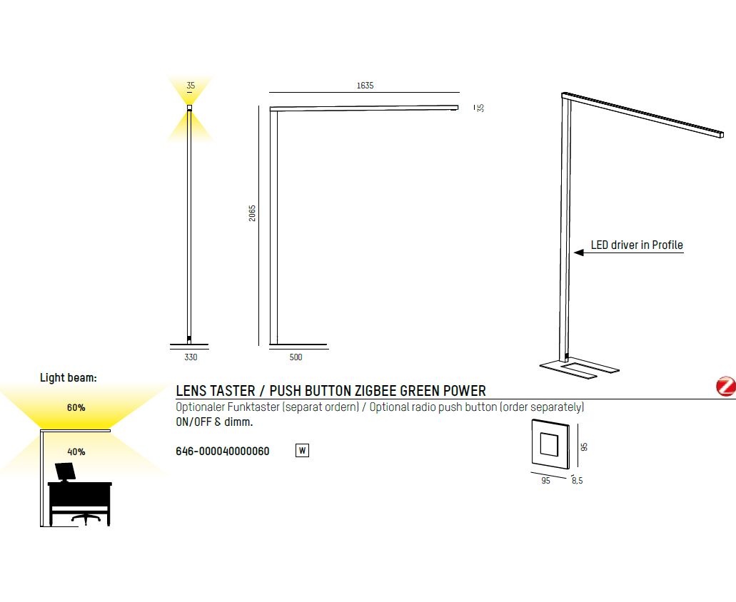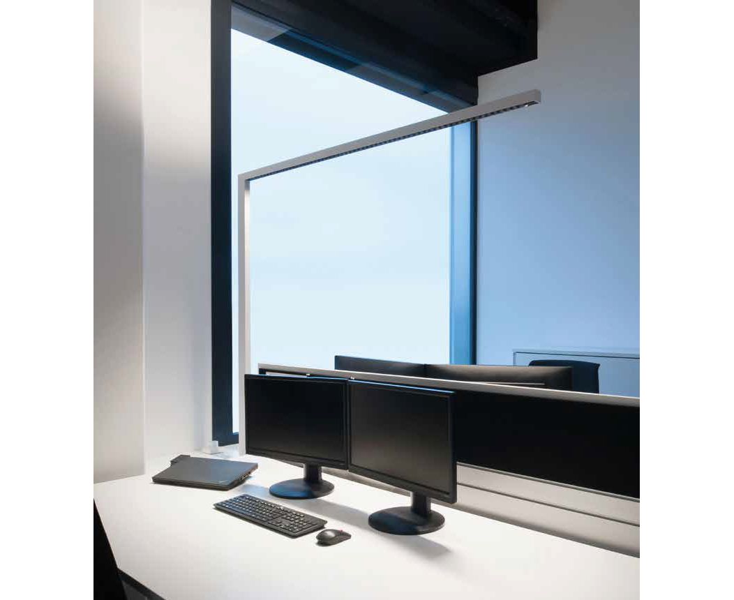 С коллекцией LENS Molto Luce удалось создать привлекательный минималистичный ряд светильников для одно- и двух рабочих секций. Элементы управления, зависящие от дневного света с датчиком движения и функцией туча, не только обеспечивают максимальную эффективность, но и максимальный пользовательский интерфейс. Рассеиватель обеспечивает идеальное подавление бликов с UGR <16 с помощью черной высокой глянцевой решетки в сочетании со специально скоординированными нисходящими линзами. Благодаря прямому / непрямому распределению света в соотношении 40:60 и выходе 11 900 люмен, современные светильники серии Lens предлагают абсолютно идеальное освещение рабочей области. Стеклянные разделители часто используются в современной офисной архитектуре сегодня, что затрудняет интеграцию обычных кнопок. Беспроводная кнопка для установки без кабеля на таких разделителях, которые можно заказать в качестве опции, предлагает идеальное решение для этого. Доступен напольный и подвесной светильник, в черном, белом или матовом серебристом цвете.