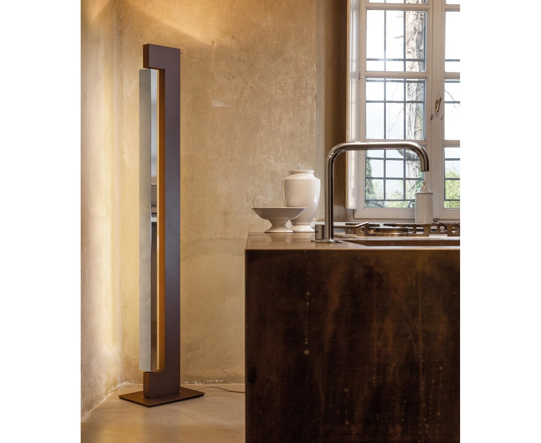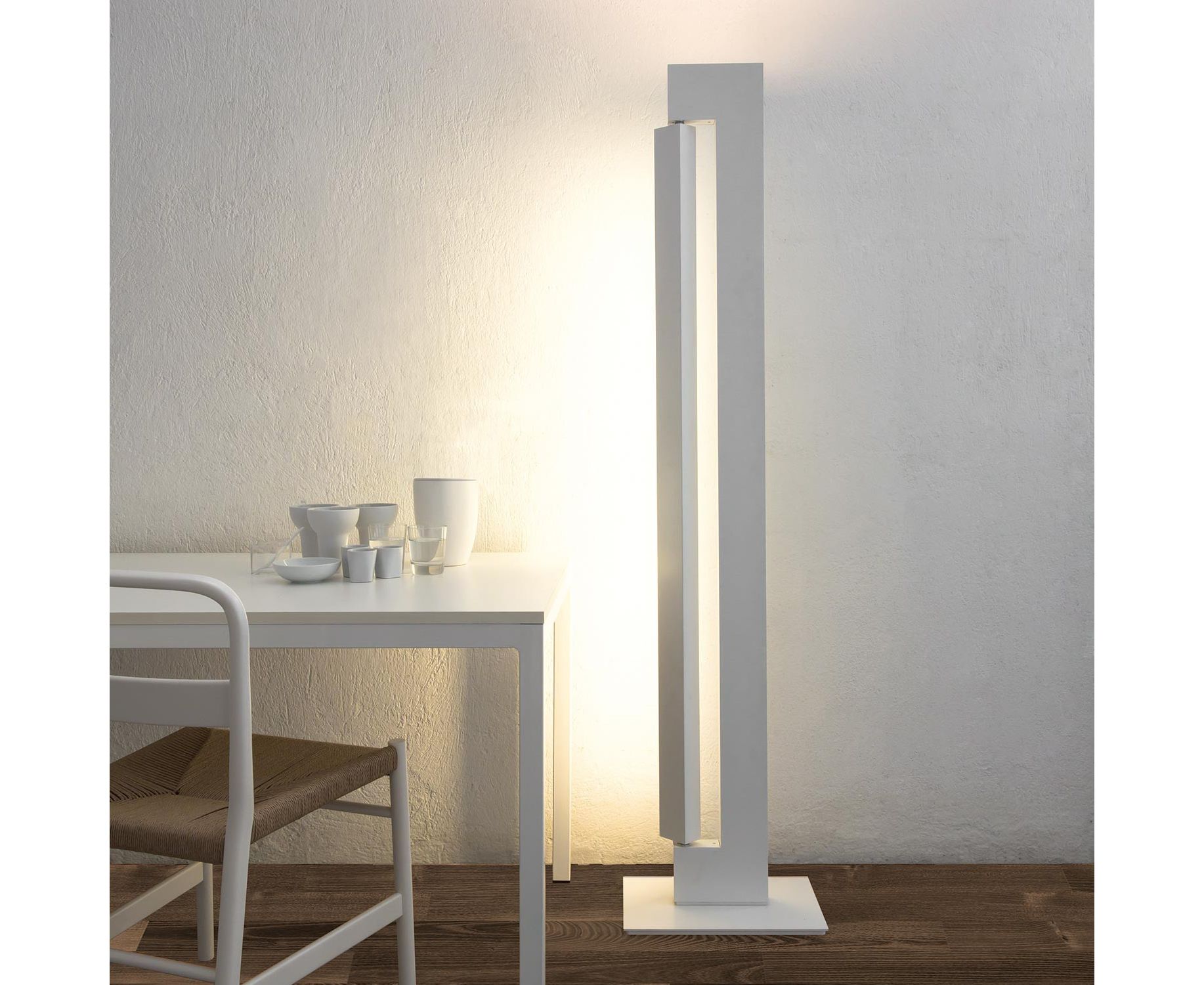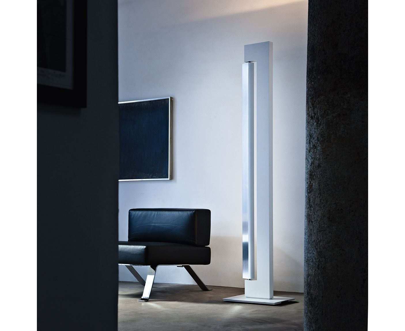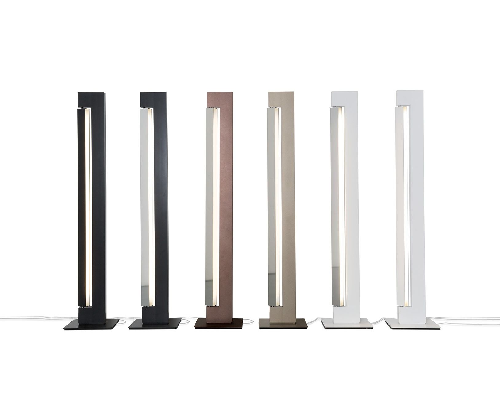 Торшер с флуоресцентными, светодиодными и галогенными источниками света в зависимости от исполнения. Он состоит из двух элементов из экструдированного алюминия: в зависимости от исполнения корпус окрашивается в белый цвет, антрацит, шампанское и мокко, а основной корпус можно отпалировать или покрасить в белый или антрацит. Светодиодный или галогенный источник света встроен в корпус и создает широко распространенный свет, в то время как флуоресцентный или светодиодный источник встроен в основной корпус для широко распространенного и регулируемого света. Двойной выключатель диммера на кабеле.