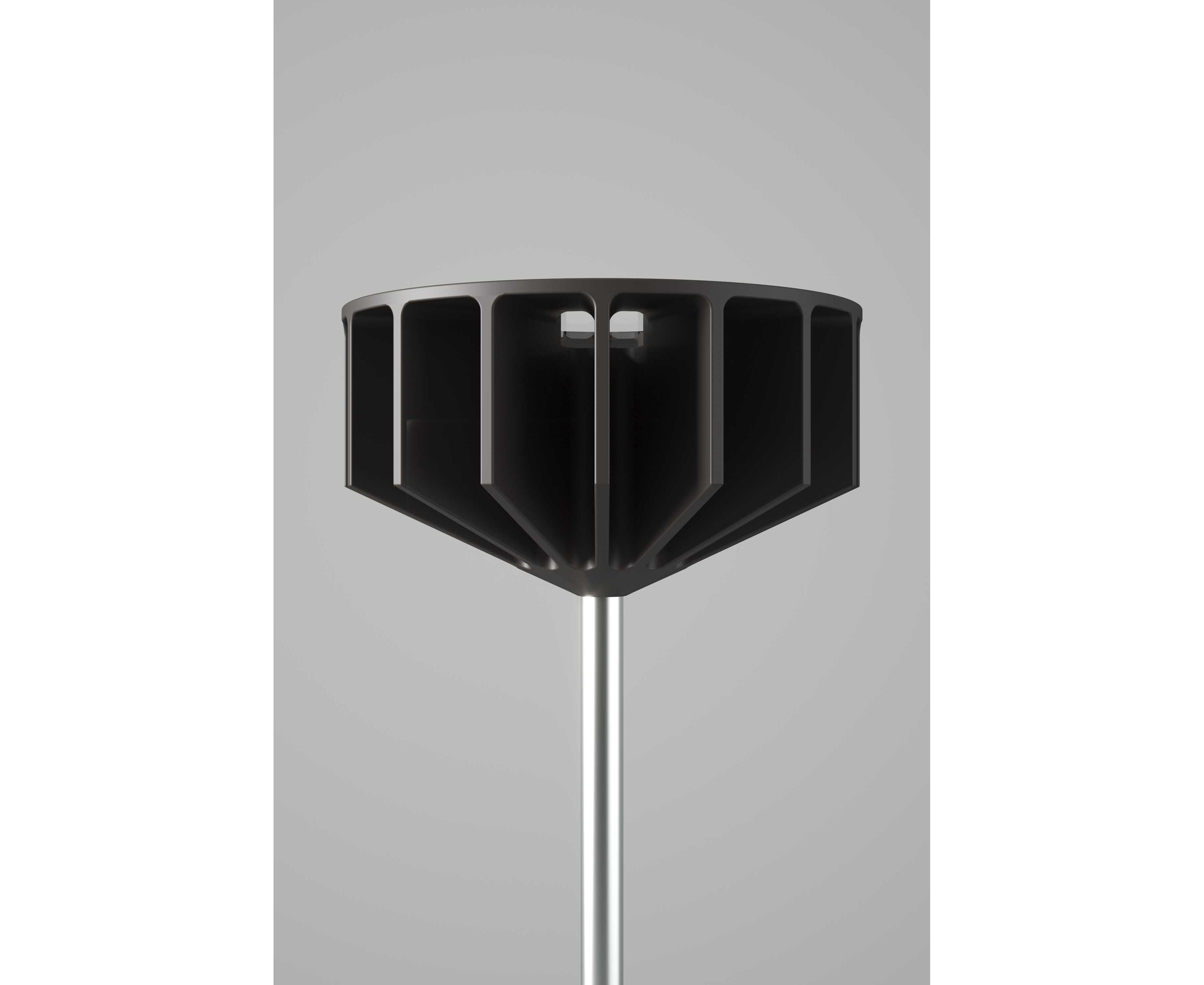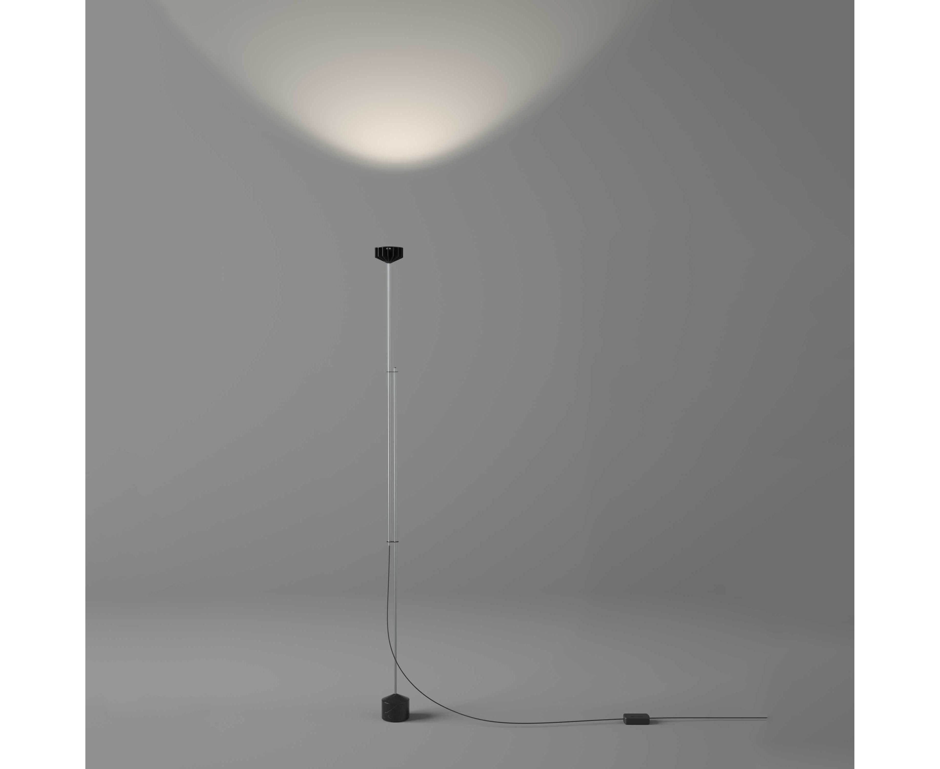 Naked - напольный светильник с восходящей балкой с минимальным и функциональным дизайном. Осевая симметрия между светодиодным светильником с его радиатором и основанием из черного мрамора, имеющих одинаковую наклонную форму 25° и одинаковый диаметр, создает линейную и элегантную геометрию, которая может быть идеально интегрирована в любой интерьер. Опорный стержень позволяет регулировать высоту светильника, от минимум 1,6 до 2 метров. Световой луч, направленный вверх, достигает 130°.