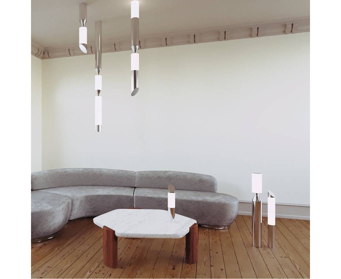 Подобно сталактитам, силуэт Gwen играет такую же важную роль в восприятии, как и форма самого объекта. Тонкие асимметричные формы позволяют изделию принимать различные формы под любым углом. Функциональный светодиодный источник света мягко рассеивается белым стеклом, контрастируя с отполированными вручную секциями из полудрагоценного металла. Gwen может выступать как в качестве самостоятельного одиночного светильника, так и быть сгруппирована в композиции для большего визуального эффекта.