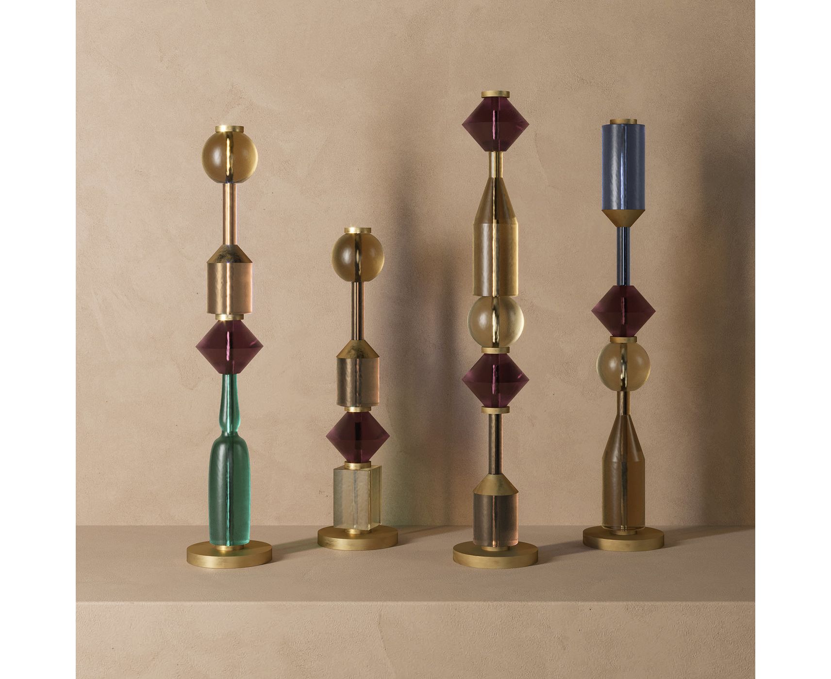 Декоративные лампы, рожденные из случайного перекрытия бутылок, которые художник Джорджо Моранди использовал для своих работ. Искусство, дизайн и умелое мастерство воплощают в жизнь серию великолепных торшеров, выполненных в четырех различных композициях. Бутылки выдуваются вручную на острове Мурано, изящные цветные стекла с использованием старинных технологий выделяют нежные цвета и оттенки, делая луч, который пересекает их, мягким и уникальным благодаря самым современным светодиодам.