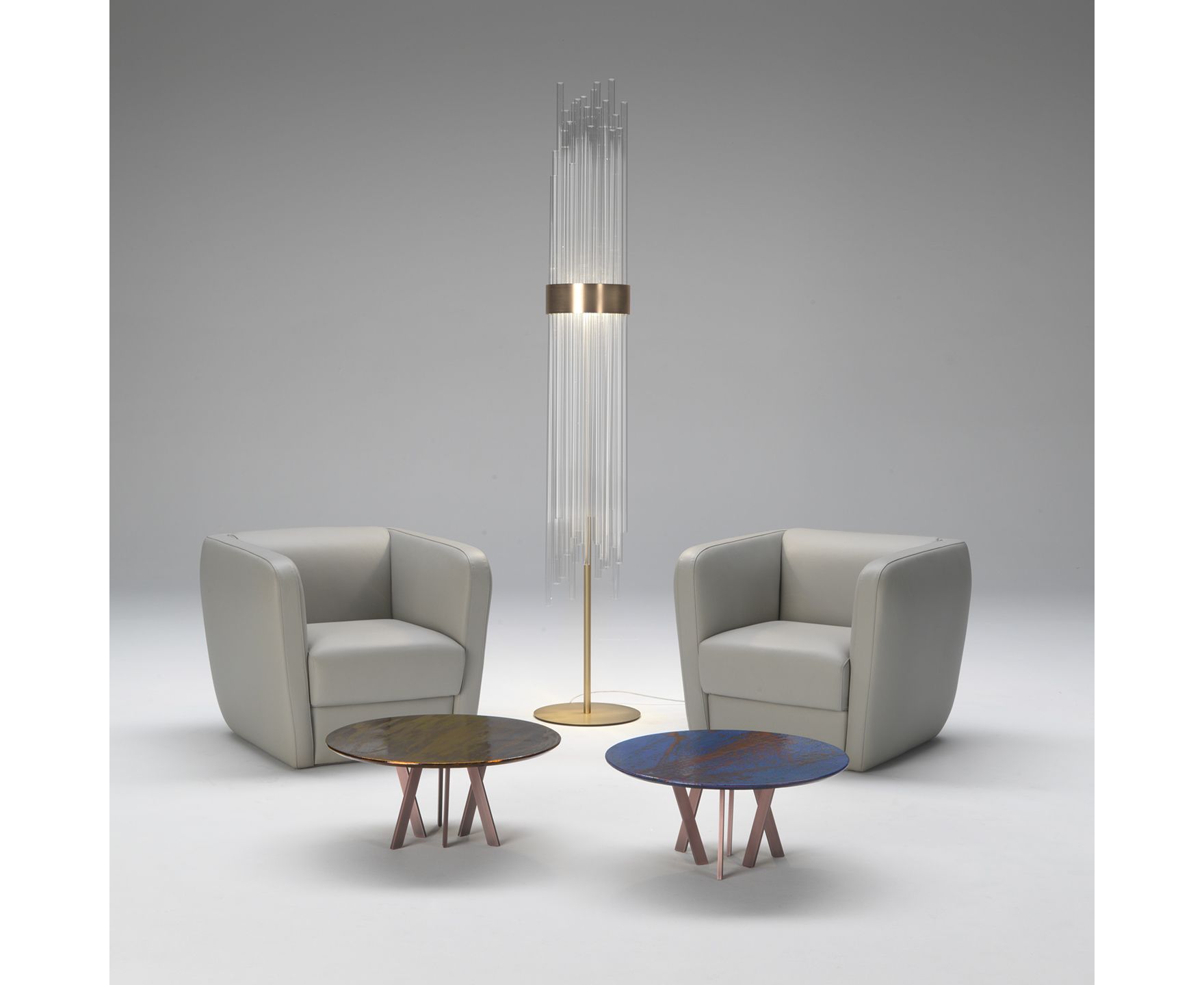 My Lamp Floor - это напольная лампа, которая может похвастаться элегантной формой, которая привносит свет и теплую атмосферу в любое пространство. Одиночно или в паре, чтобы создать идеальную симметрию, обогащает и добавляет характер в любой комнате. Она имеет металлическую основу и конструкцию с гальваническим покрытием из матового золота и открытыми цилиндрическими трубками из венецианского боросиликатного стекла.