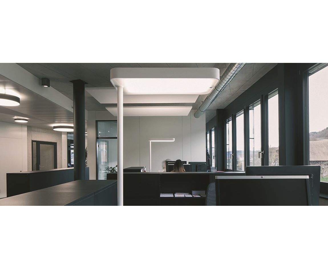 SENSO DIM | TOUCH DIM Доступен также выбор функций диммирования: суперэффективный SENSO DIM определяет, присутствует ли кто-либо, и соответствующим образом включает или выключает свет. SENSO DIM регулирует яркость в зависимости от уровня дневного света. В качестве альтернативы лампы @ -WORK могут быть оснащены TOUCH DIM, ручное затемнение кнопкой.