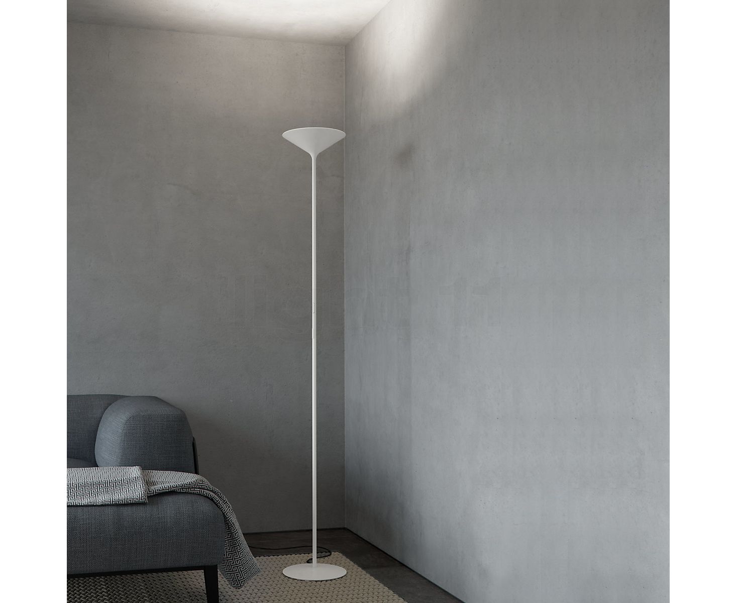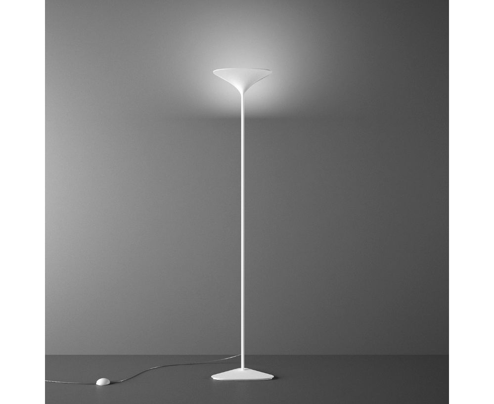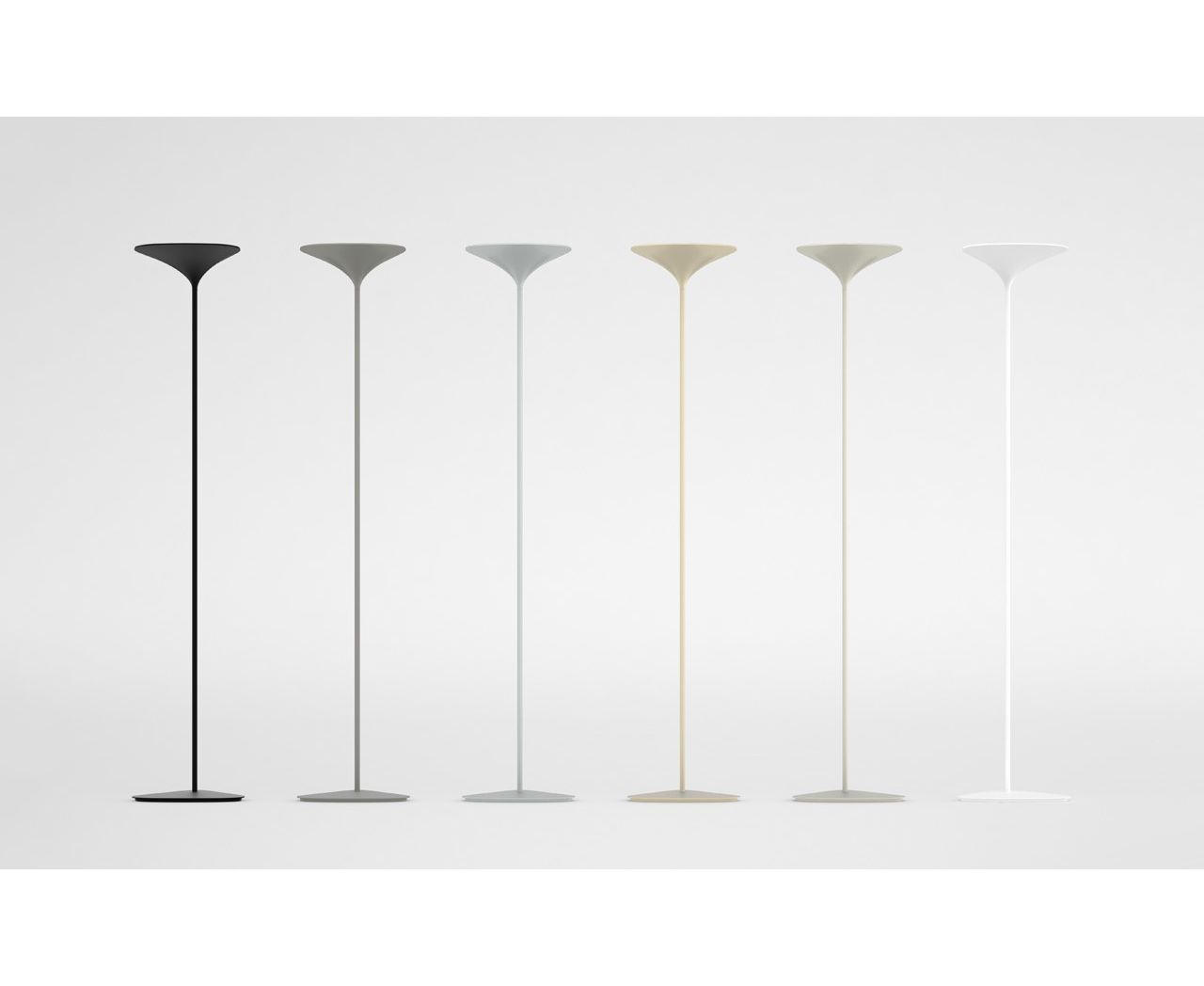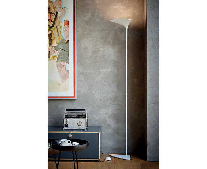 Этот светильник непрямого освещения изготовлен из алюминия. Его эмоциональная форма также функциональна: фактически, изогнутая головка лампы была разработана для улучшения отражения света на стенах.