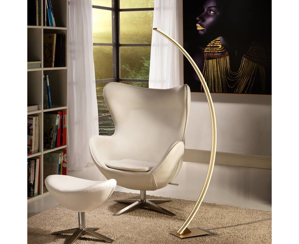 Торшер LED из металла и алюминия, золотистое покрытие с матовой полировкой. Опаловый силиконовый рассеиватель