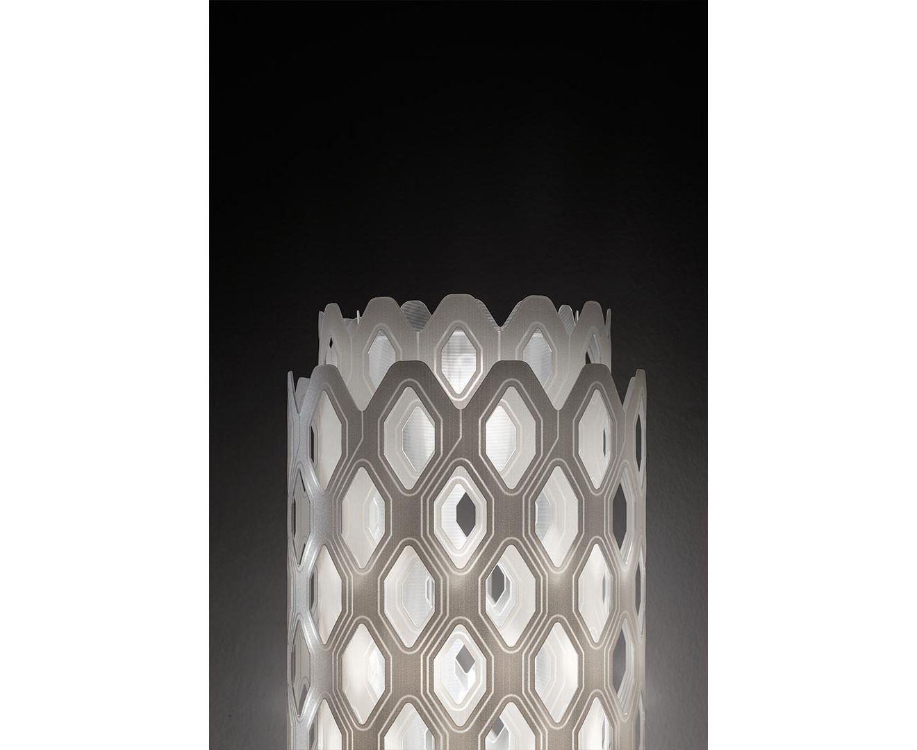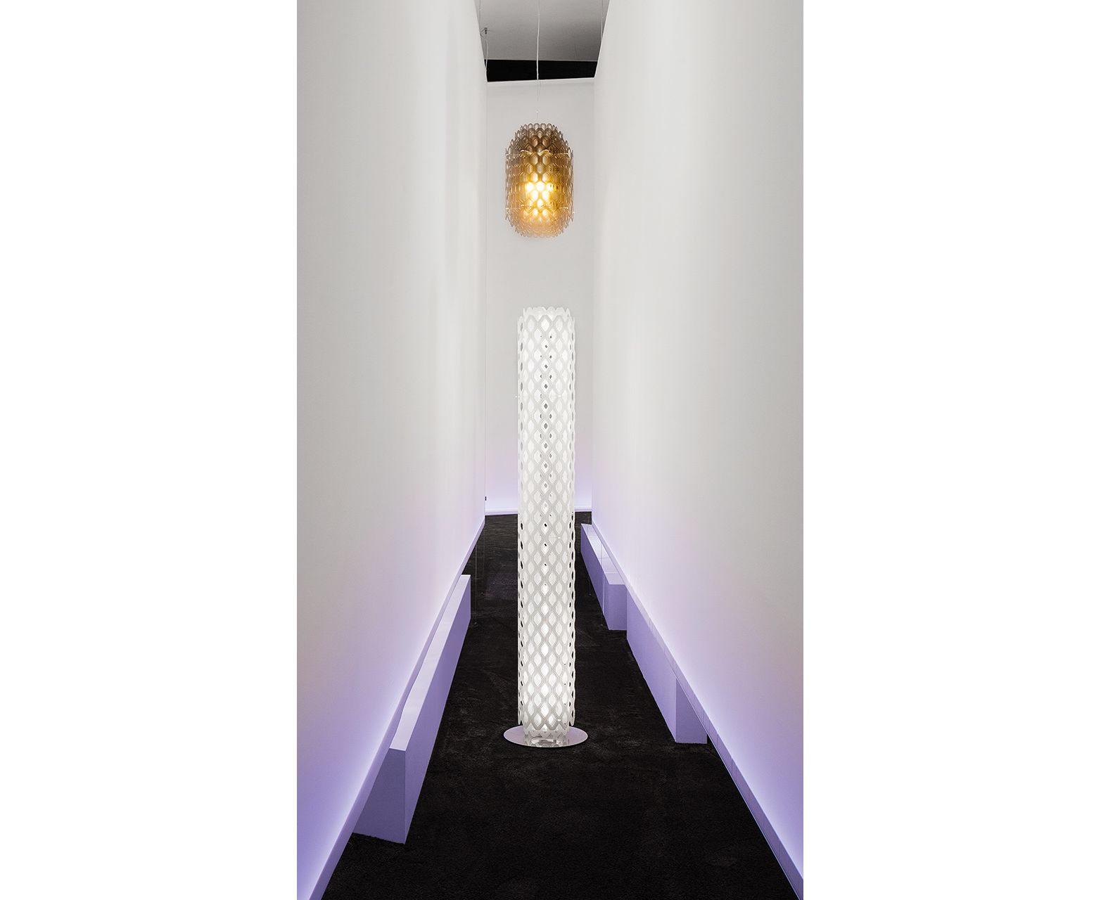 Charlotte Floor была создана из мира иллюзий, из задачи превращения двумерного элемента в бесконечно преумножающиеся формы. Свет напоминает свет волн, отдаляющихся от берега, оставляя за собой небольшие освещенные капли. Скульптурная форма Charlotte Floor, кажется, отлита из единственного, аккуратного каркаса, очень похожего на соты с неощутимыми элементами. Его концентрические, шестиугольные формы допускают бесконечные виды.