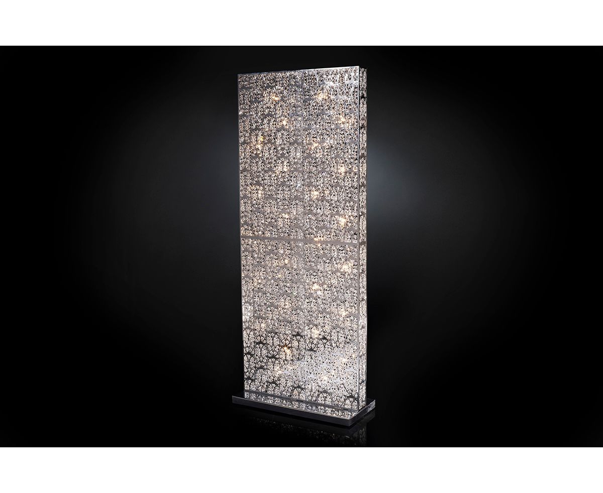 Современный настольный / напольный светильник со структурой из нержавеющей стали, сваренной вместе и ограненной вручную кристаллами Asfour. Стандартная отделка из полированного хрома.