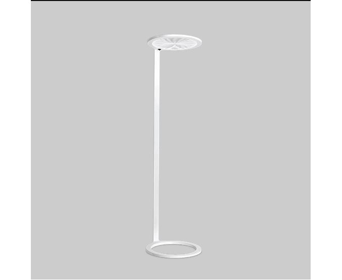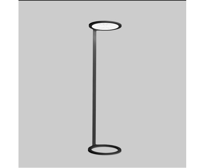 Торшер с кольцеобразным тонким абажуром (всего 17 мм) и опорной стойкой трапециевидная вертикальная стойка из алюминия; поверхность белая или черная с порошк. покрытием; электронное устройство управления смонтировано в вертикальной стойке; встроенный теплоотвод с геометрией светильника для оптимального терморегулирования и пассивного охлаждения светодиодов; прямое/непрямое светораспределение благодаря корпусу LGP (Light Guiding Prism); вводимый сбоку свет перенаправляется через лазерную гравировку вверх и вниз; область прям. излучения: рассеиватель из ПММА круглопризм. структуры, абс. однородная подсветка; опционально: распределение света управляется с помощью патентованного роторного рефлектора из высокоотражающего материала; соотношение прямого и отраженного света плавно регулируется от 70:30% до 100% прямого излучения; светильник для рабочего места перед монитором согласно DIN EN 12464-1 (UGR < 19); энергоэфф. светодиоды с высокой степенью цветопередачи; биннинг начальный ≤ 3 МакАдаму; поставляются с цветовой темпер. 3000 K и 4000 K; CRI ≥ 80; мин. 80% светового потока спустя 50000 ч эксплуатации; степ. защ. IP 20; Защ. I; простая регулировка с помощью интегрированной сенсорной функции DIM на верт. стойке или встроенного инфракрасного датчика присутствия и яркости; вкл. соед. кабель (3 м) со штепселем с защитным контактом.