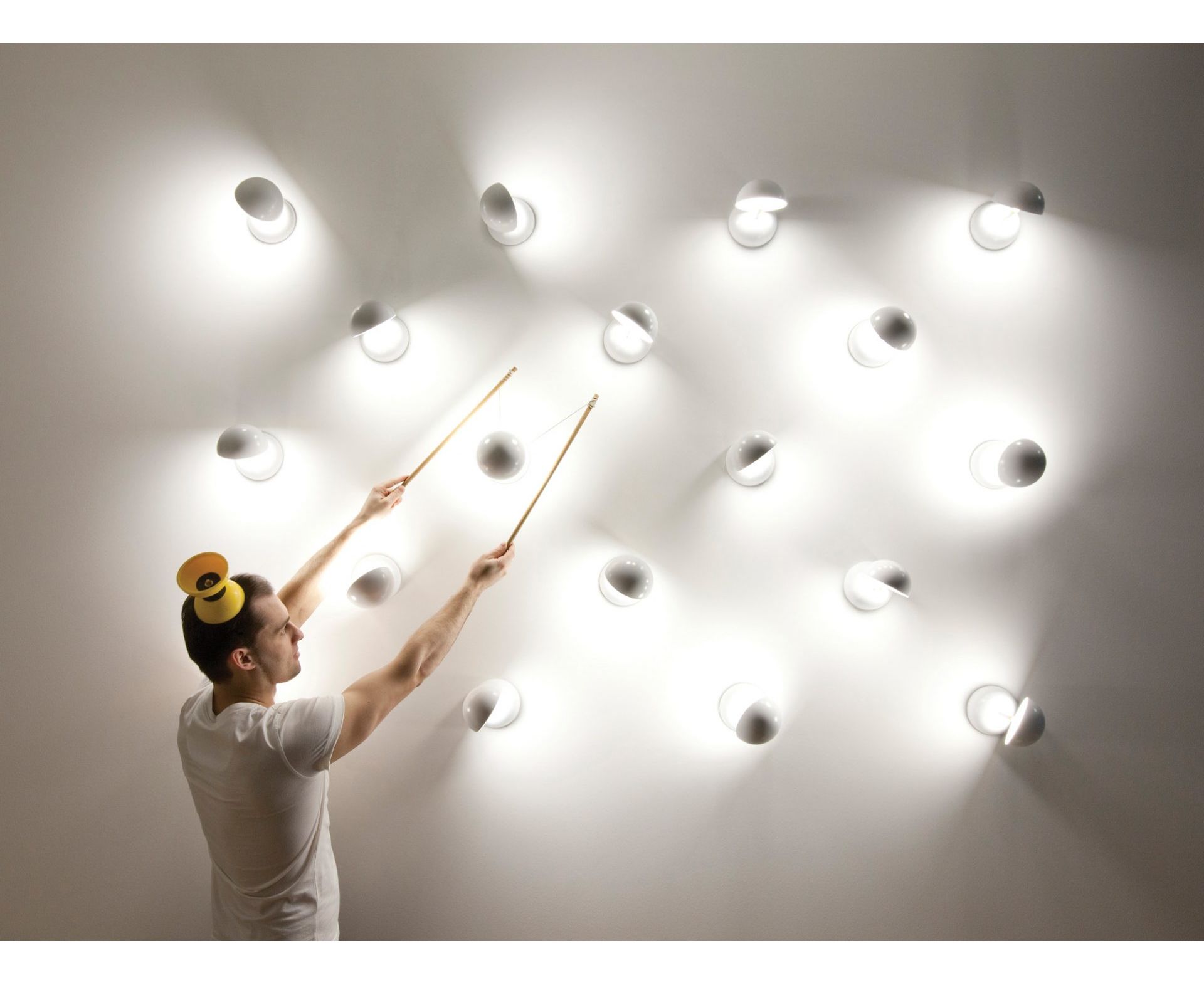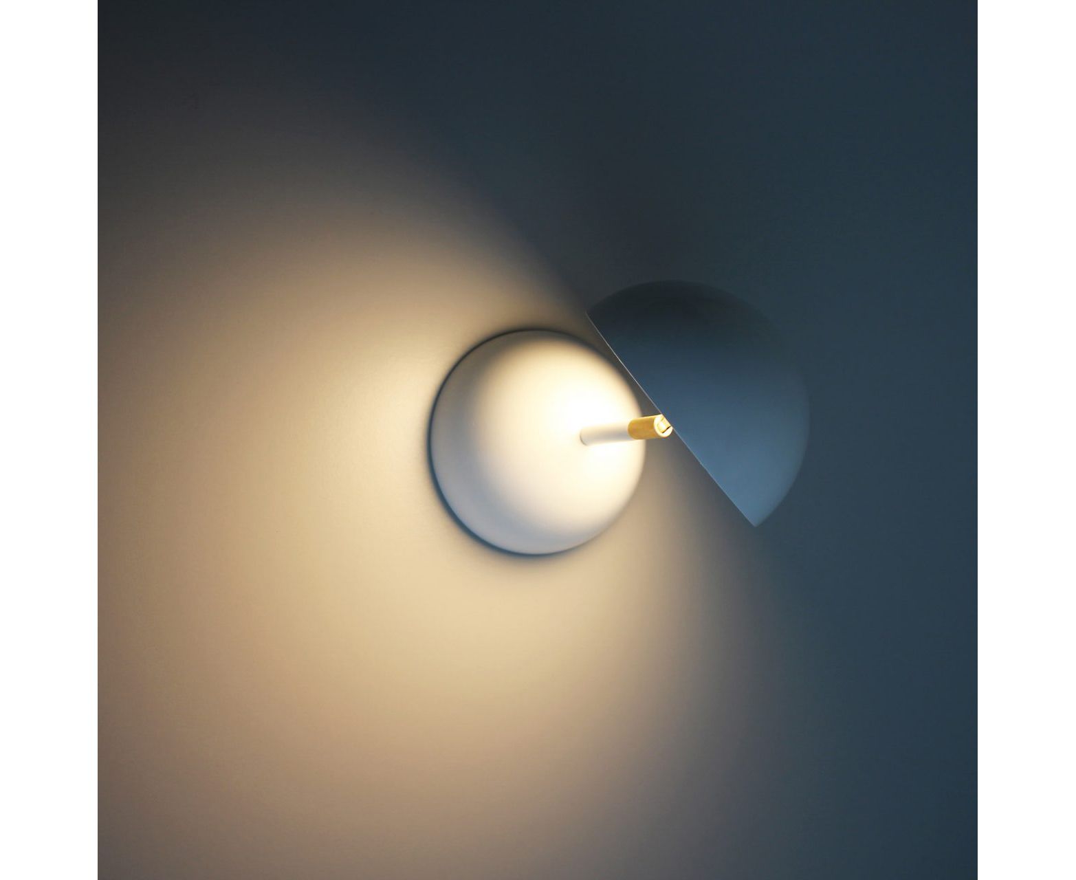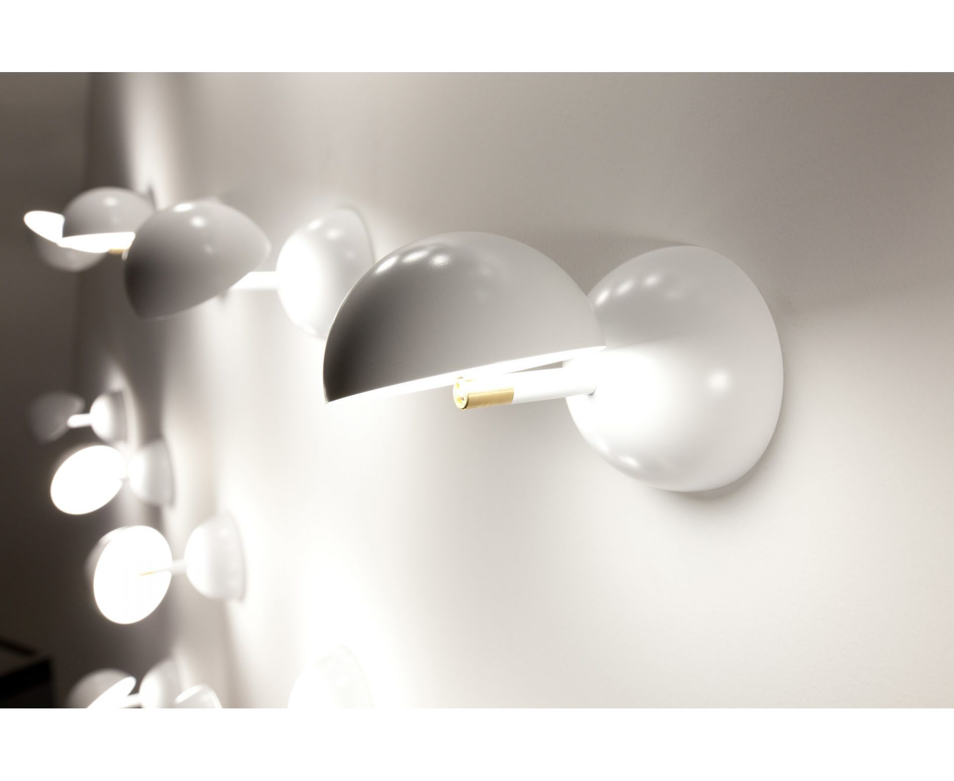 Два полушария, пара или близнецы, одно из которых подсвечивается светодиодом и поворачивается на 190° / 360° вокруг своей оси. Одиночно или в ряд, оно вызывает образы солнечного затмения, стула в стиле честерфилд или игрушки-диаболо. Доступен как настольная лампа, настенная лампа или потолочная лампа и в нескольких цветах. Дизайн Барт Ленс.