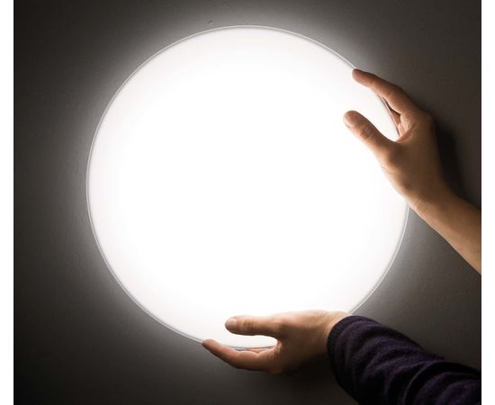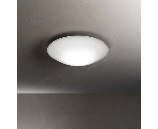 Настенный и потолочный светильник, широко рассеивающий свет. Прозрачное выдувное стекло с опаловой внутренней частью. Настенная опора из белого алюминия.