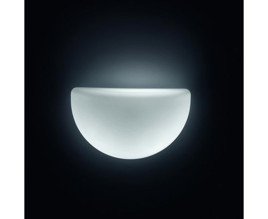 Настенный и потолочный светильник с рассеивателем из опалового выдувного стекла и основанием из белого металла с эпоксидным покрытием.