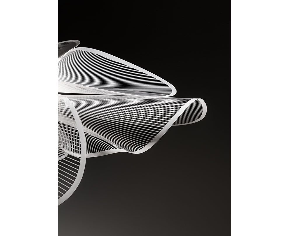 Элегантные и чувственные движения являются частью визуальной грамматики La Belle Étoile; подвеска вдохновлена изящным вращением балерины. Лёгкий, но небьющийся светильник полностью изготовлен вручную в ателье Slamp. Диалог между технологическими инновациями и стилистической оригинальностью говорит громко; Светодиодный источник может быть легко и быстро заменен благодаря эксклюзивной магнитной подвесной системе, а белая текстура, напечатанная на прозрачных полимерах, - это элементы, которые создают изысканный современный дизайн. Мягкий светящийся светодиодный источник может быть затемнен от полного освещения до мягкого окружающего свечения, чтобы дополнить его окружение. Варианты подвески и настенного/ потолочного варианта являются универсальными, авангардными осветительными решениями, предлагающими минималистичную, эффектную эстетику. La Belle Étoile привносит скульптурное освещение во множество интерьеров.