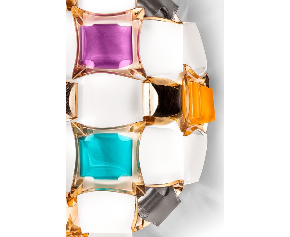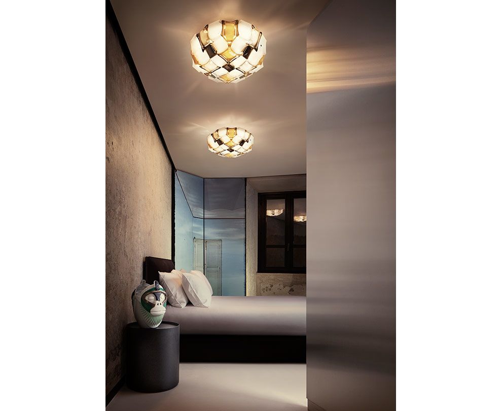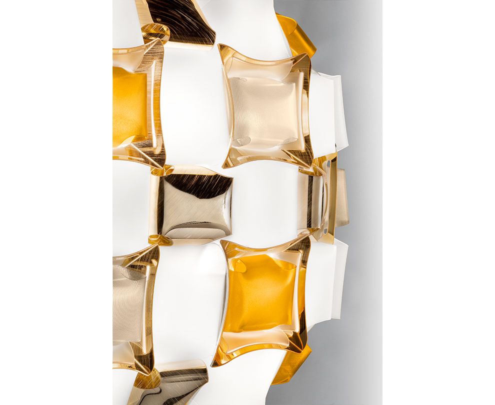 Mida - это потолочный / настенный светильник с эксклюзивной магнитной системой Mida, вдохновленный миром драгоценных камней высокой моды. Усеян драгоценными камнями, которые создают почти невидимую обстановку, а полированный кабошон геометрически разбросан по цветочному венчику с шелковистыми переливающимися камнями. Доступный в пяти цветовых комбинациях, от яркого многоцветного до более универсального белого / платинового и белого / золотого. Mida полностью изготовлена вручную из белого Opalflex® и напечатана Lentiflex®, чей шелковистый эффект морфинга чередуется с матовыми металлизированными «драгоценными камнями». Mida делает любую комнату очень роскошной.